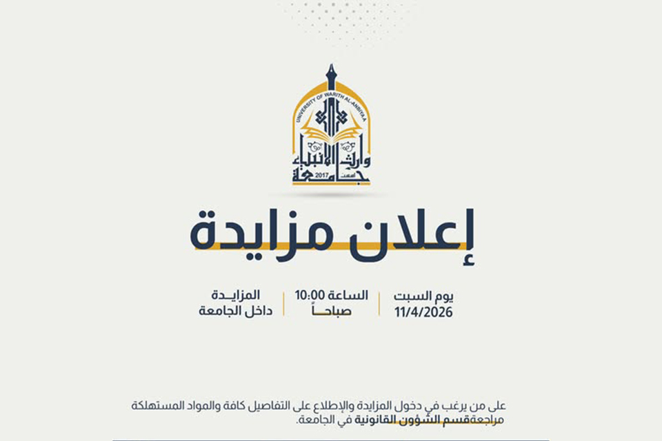 جامعة وارث الأنبياء تعلن عن مزايدة للمواد المستهلكة داخل الحرم الجامعي