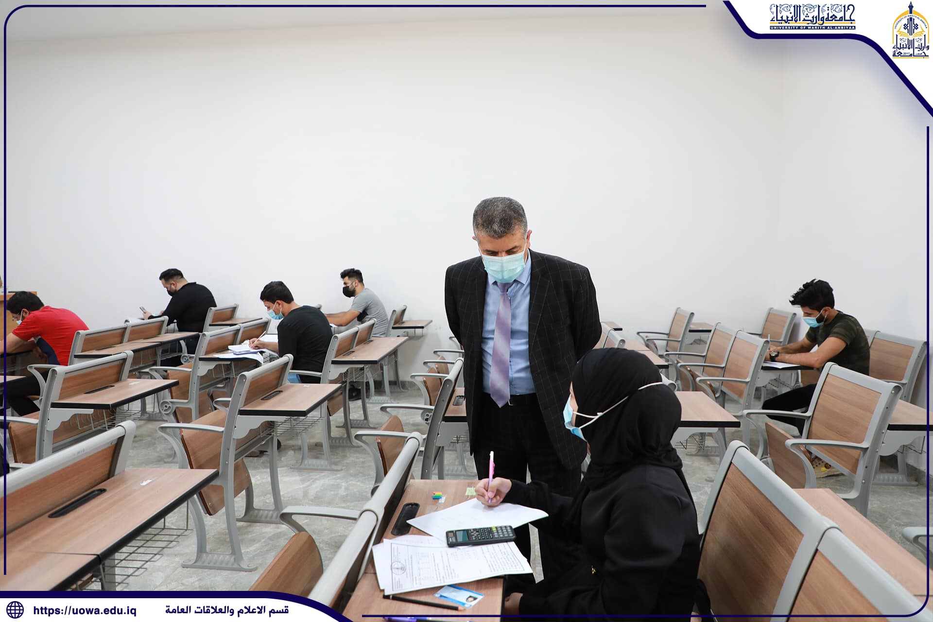 استقبلت جامعة وارث الانبياء (عليه السلام) اللجنة الوزارية المؤلفة من عدد من اساتذة جامعة كربلاء لمتابعة عمل اللجان الامتحانية وسير الامتحانات النهائية ، حيث كان في استقبال الوفد السيد المساعد العلميّ/رئيس الجامعة وكالة الاستاذ الدكتور عباس الدعمي والسادة عمداء كليتي الهندسة والتمريض،اذ اجرى الوفد جولة تفقدية في الجامعة تابع فيها سير عمل اللجان الامتحانية والاطلاع على السجلات الامتحانية للطلبة ، من جانبه اثنى الوفد على الاجراءات المتبعة من قبل الجامعة تحقيقاً للرصانة العلمية .