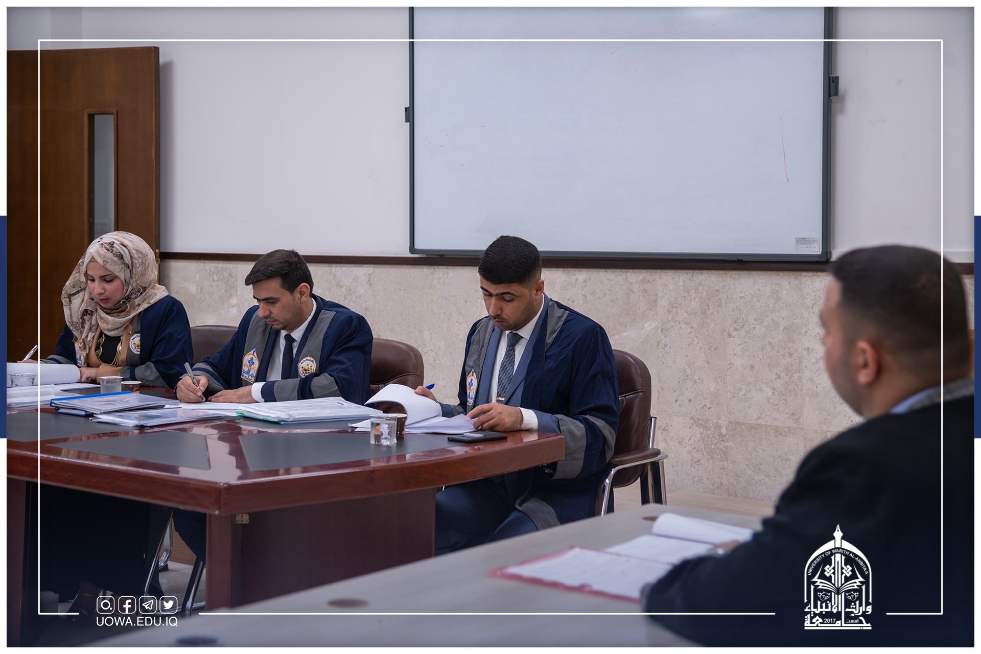 بحضور لجنة علمية مشكلة من قبل عمادة كلية الادارة والاقتصاد للإشراف على المناقشات، عقد قسم ادارة الاعمال جلسة خاصة لمناقشة بحوث التخرج لطلبة المرحلة الرابعة