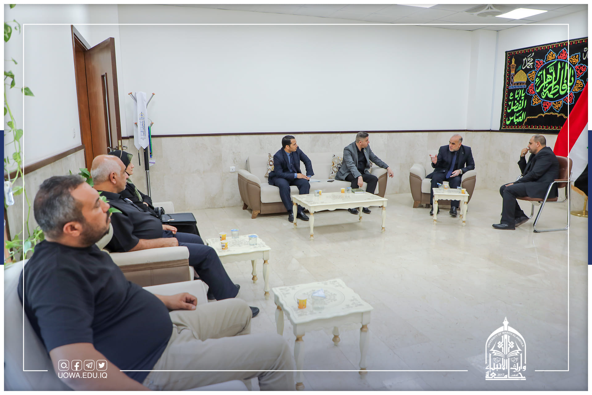 استقبل السيد المساعد العلمي الاستاذ الدكتور عباس الدعمي، وفد من كلية التمريض في جامعة كربلاء برئاسة عميد الكلية ورئيس لجنة عمداء كليات التمريض العراقية الاستاذ الدكتور علي كريم خضير الذي زار الجامعة لتقديم درع التميز والابداع للسيد رئيس الجامعة وتسلمه بالنيابة السيد المساعد العلمي والسيد عميد كلية التمريض والسيد عميد كلية الطب ذلك لمساهمتهم الفاعلة وتعاونهم في انجاح الإمتحانات النهائية التقويمية للطلبة للعام الحالي 2021 -2022 إضافة الى كتب شكر وتقدير.