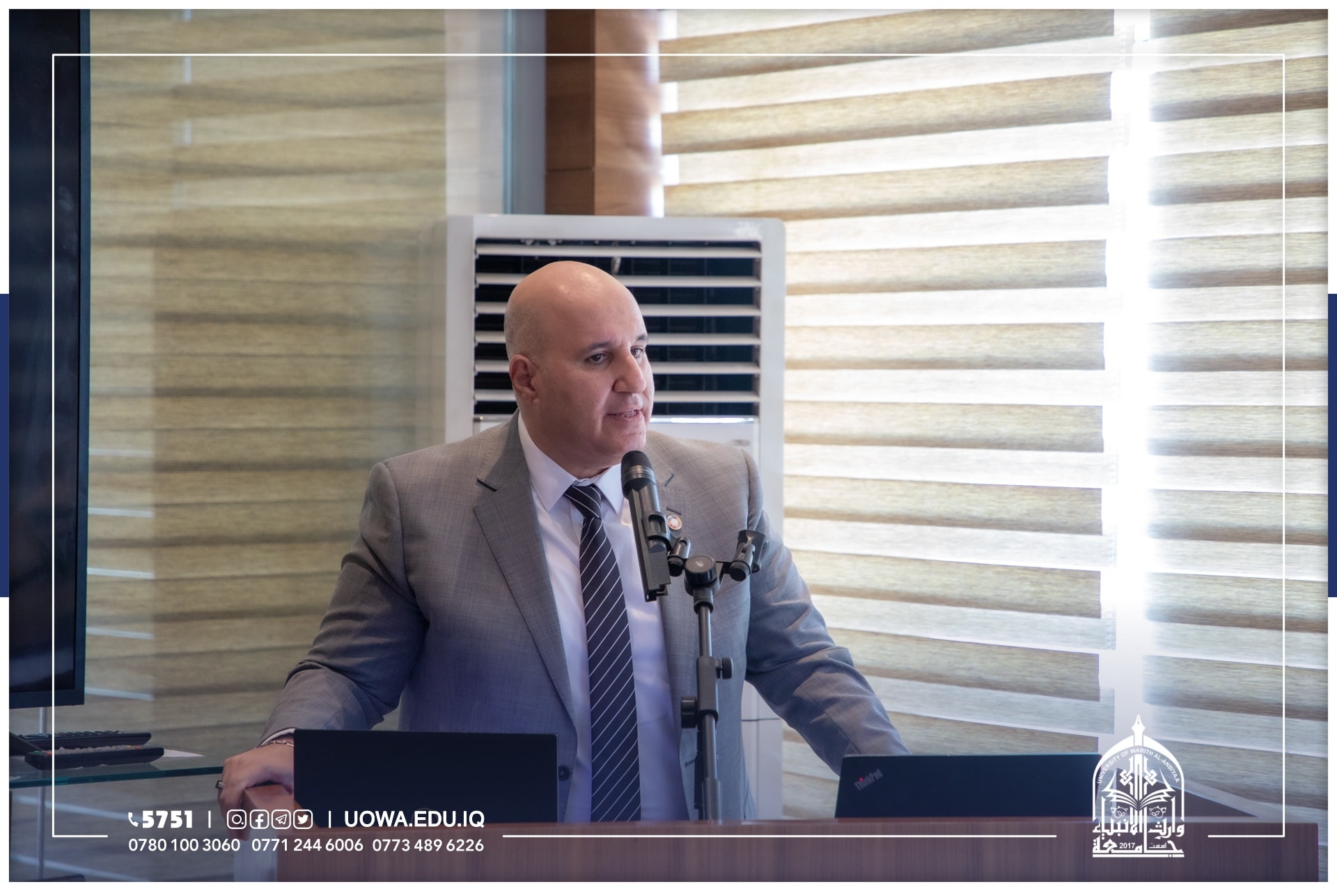 شارك طلبة جامعة وارث الانبياء(عليه السلام) بحضور المساعد العلمي الاستاذ الدكتور عباس الدعمي ومحافظ كربلاء المهندس نصيف جاسم الخطابي، ورئيس جامعة كربلاء الاستاذ الدكتور باسم السعيدي، في "المؤتمر الختامي لعرض مبادرات الشباب في التنمية المستدامة" الذي اقامه البرنامج الانمائي للامم المتحدة.