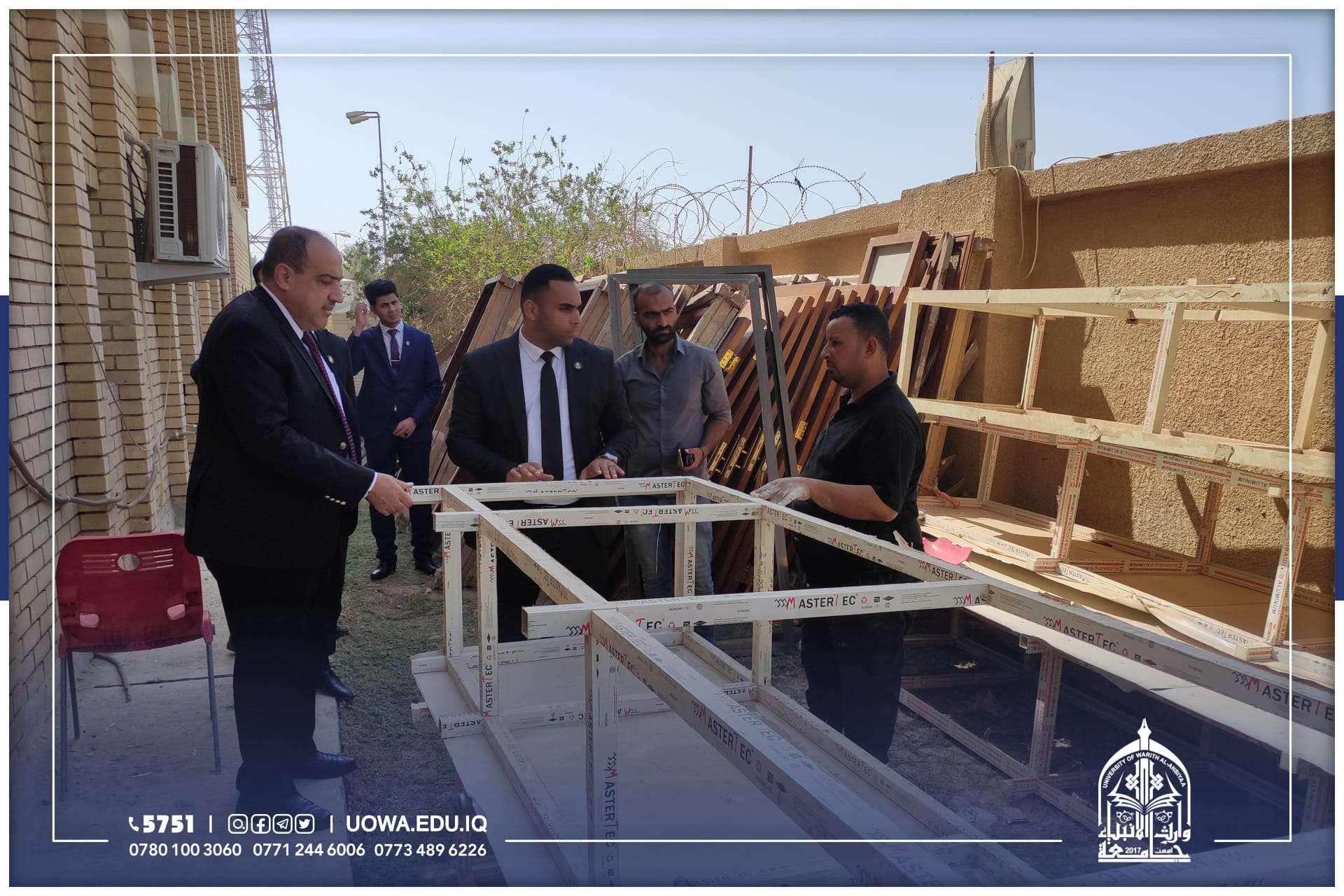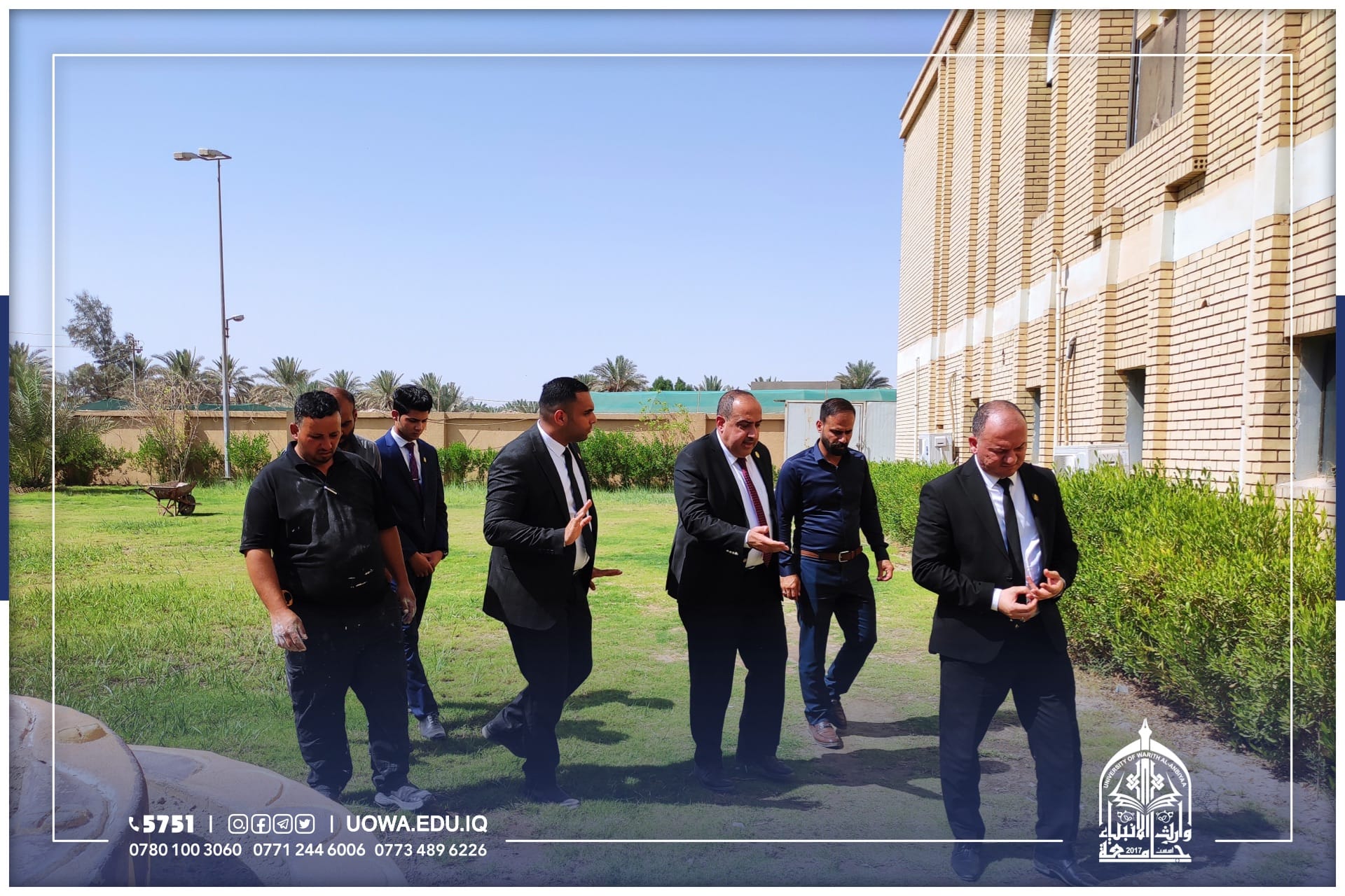 للوقوف على اهم الاستعدادت للعام الدراسي القادم، جانب من الجولة التفقدية لرئيس جامعة وارث الأنبياء (عليه السلام) الاستاذ الدكتور أبراهيم سعيد الحياوي برفقة بعض روساء الاقسام الفنية والإدارية، في أروقة ومباني الجامعة للوقوف على أحتياجاتها وأستعدادتها، اضافة إلى تهيئة مساحات خضراء وواجهات عمرانية جديدة، تحضيرا للعام الدراسي الجديد.