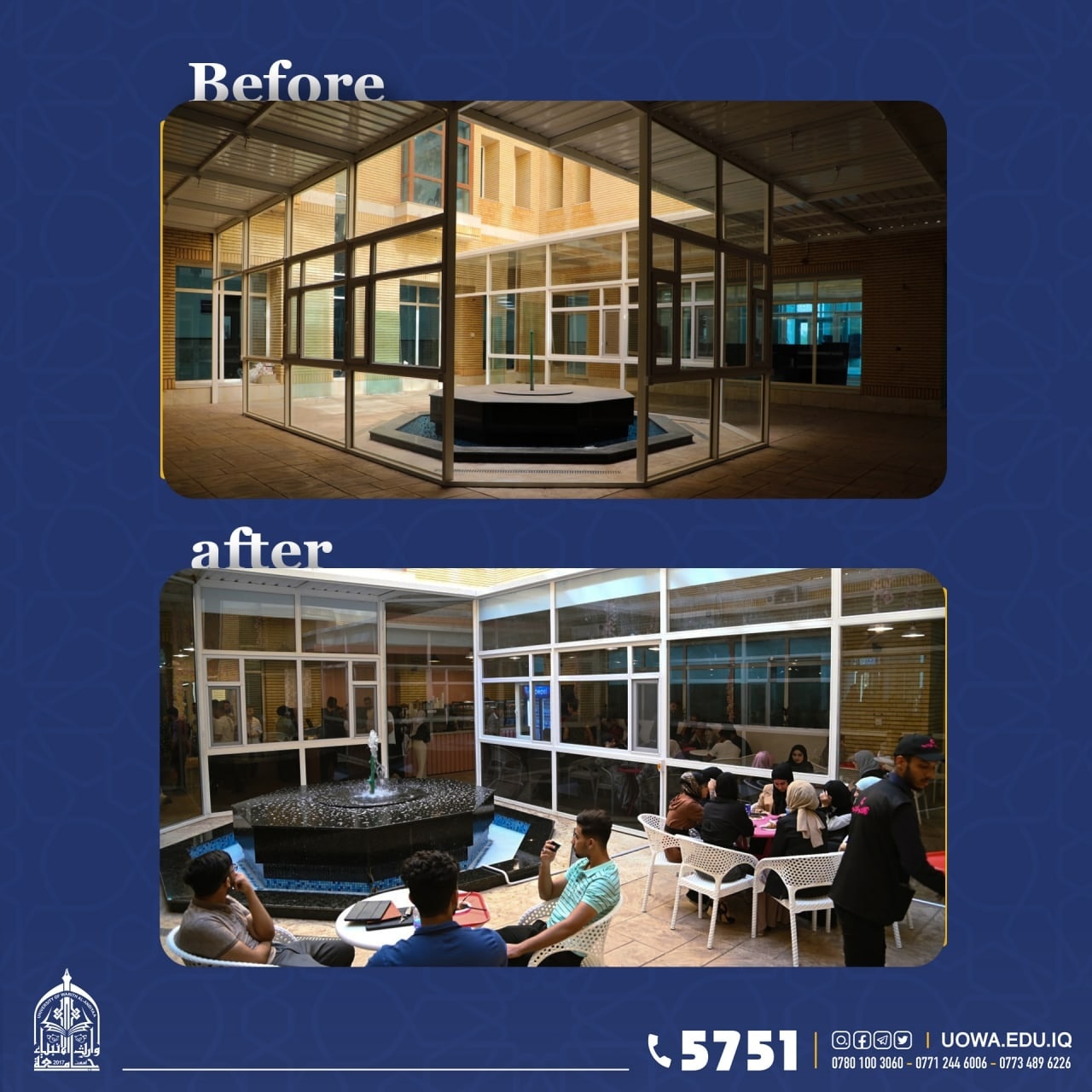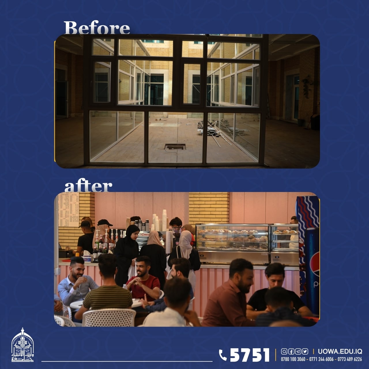 بالصور... سلسلة النوادي الطلابية الحديثة التي افتتحت في جامعة وارث الانبياء(عليه السلام)، حيث تولي رئاسة الجامعة اهتماماً بالغاً لافتتاح سلسلة نوادي اخرى مع بداية العام الدراسي الجديد.