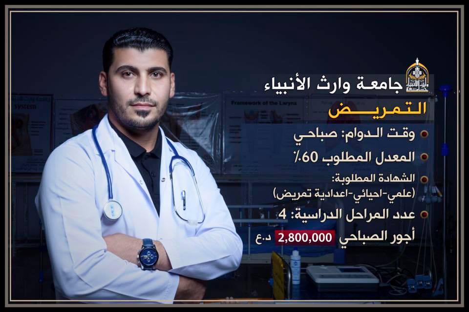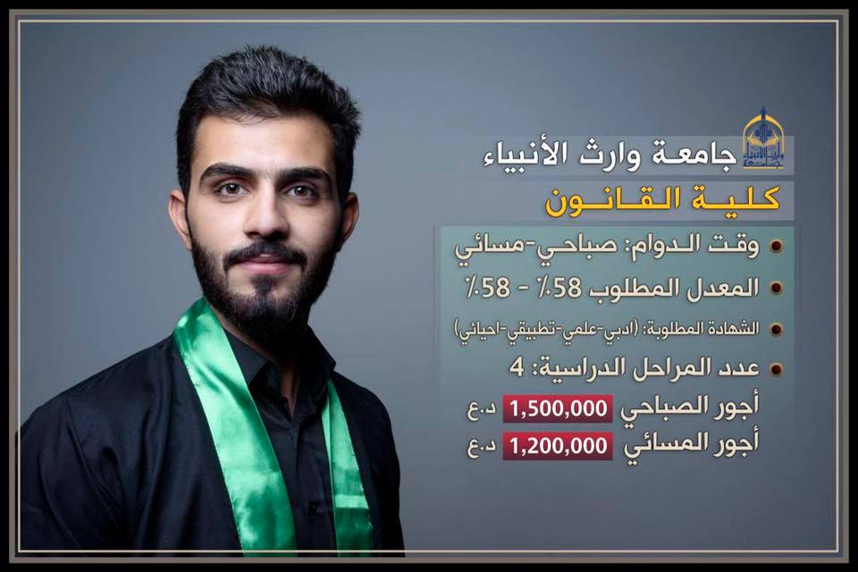 عاجل عاجل الى خريجي الدراسة الاعدادية (الدور الثالث) ندعو طلبتنا الاعزاء الراغبين بالتقديم على #جامعة_وارث_الانبياء_التابعة_للعتبة_الحسينية_المقدسة للعام الدراسي ٢٠١٨-٢٠١٩ نعلمكم بان التقديم للقبول يبدء من اليوم الاحد في كليات واقسام الجامعة في مقر الجامعة