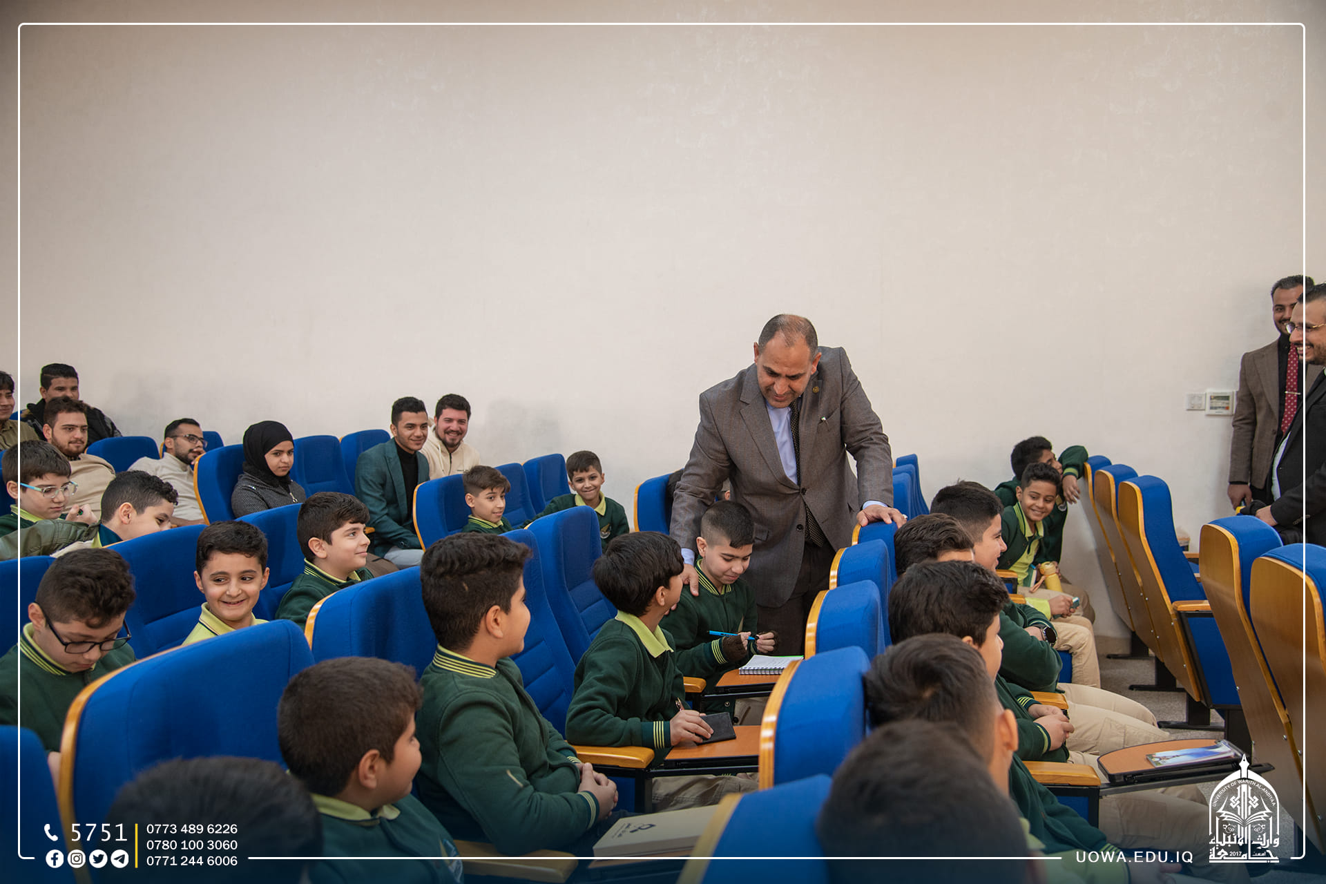 استقبلت جامعة وارث الأنبياء (عليه السلام) عدد من طلبة مرحلة الخامس الابتدائي في مدرسة الق الوارث الابتدائية التابعة للعتبة الحسينية المقدسة، وتجول الطلبة في أروقة الجامعة وكلية التمريض واطلعوا على المختبرات العلمية فيها، وتم تقديم شرح مختصر عن مختبر الكيمياء والتشريح، إذ تساهم هذه الرحلات في تنمية مهارات الطلبة، وفي نهاية السفرة خط الطلبة رسائل شكر الى الجامعة بأناملهم اليافعة، عبروا من خلالها عن التفاصيل الجميل التي شاهدوها في الجامعة بأنامل بريئة .