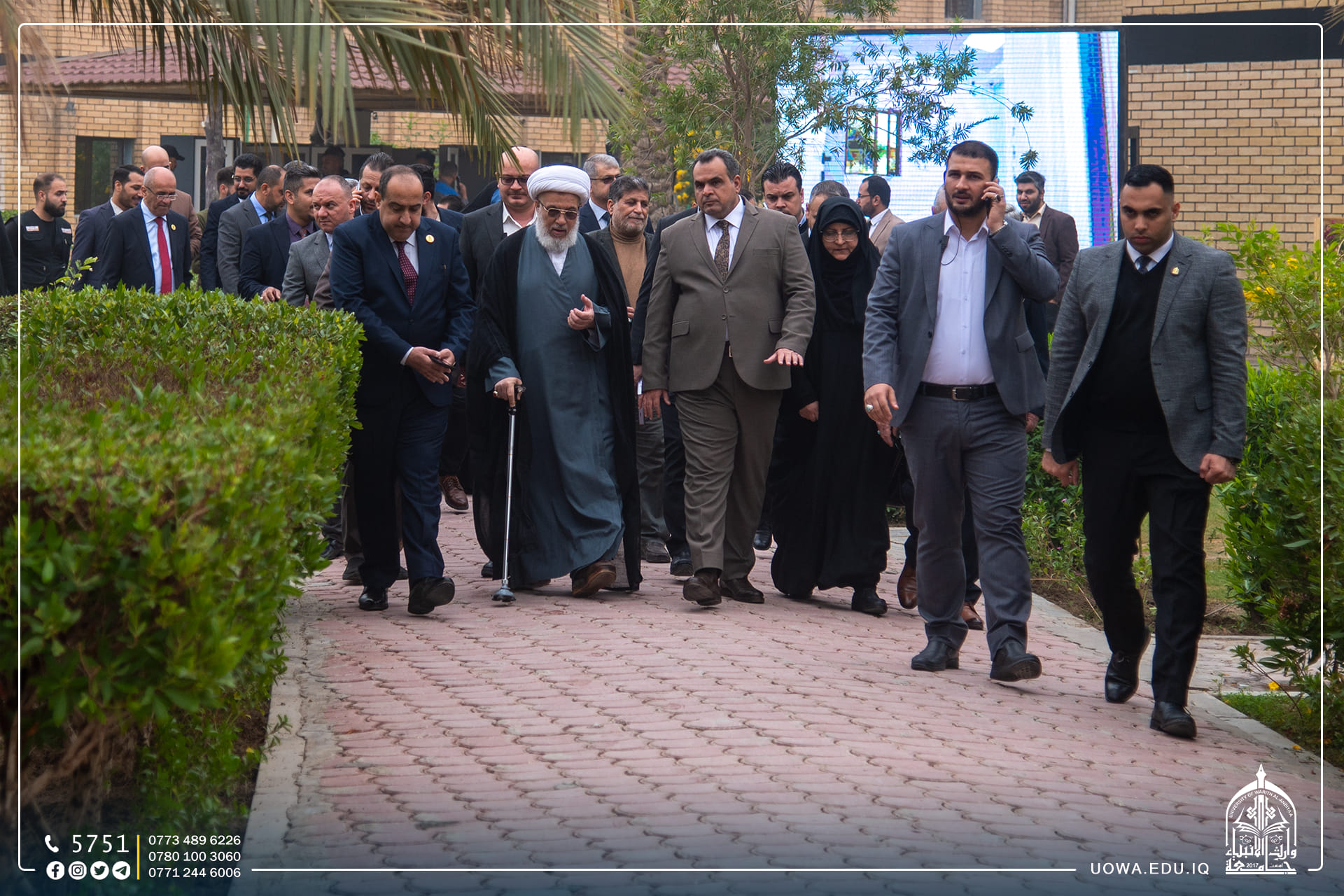إذ اطلع سماحته على التطور العمراني والعلمي في الجامعة والتقى بعدد من الطلبة مؤكداً على أهمية البناء العلمي الرصين لهم خلال المراحل الدراسية جنباً الى جنب مع الاهتمام بالبناء العمراني ومتانته.