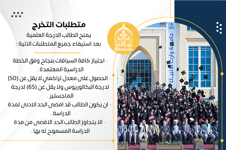 - الحصول على معدل تراكمي لا يقل عن (50) لدرجة البكالوريوس ولا يقل عن (65) لدرجة الماجستير .
