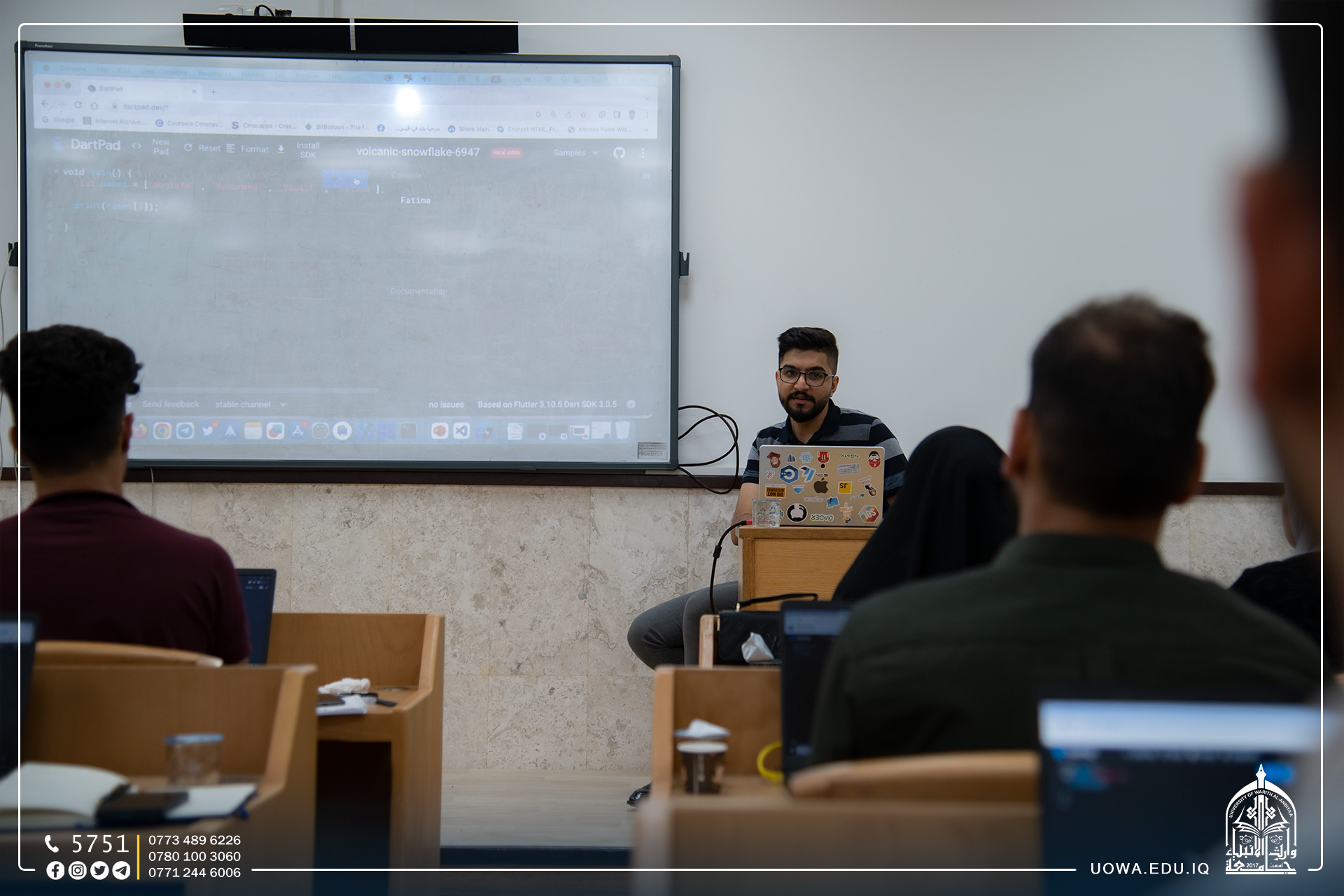 التقطت عدسة اعلام جامعة وارث الأنبياء (عليه السلام) صورا اثناء أقامة دورة تدريبية بعنوان (حول فكرتك الى تطبيق واقعي) والمقامة من قبل مركز التعليم المستمر وبالتعاون مع مركز الحاسبة الالكترونية والتي تم القائها من قبل المهندس مصطفى جمال.