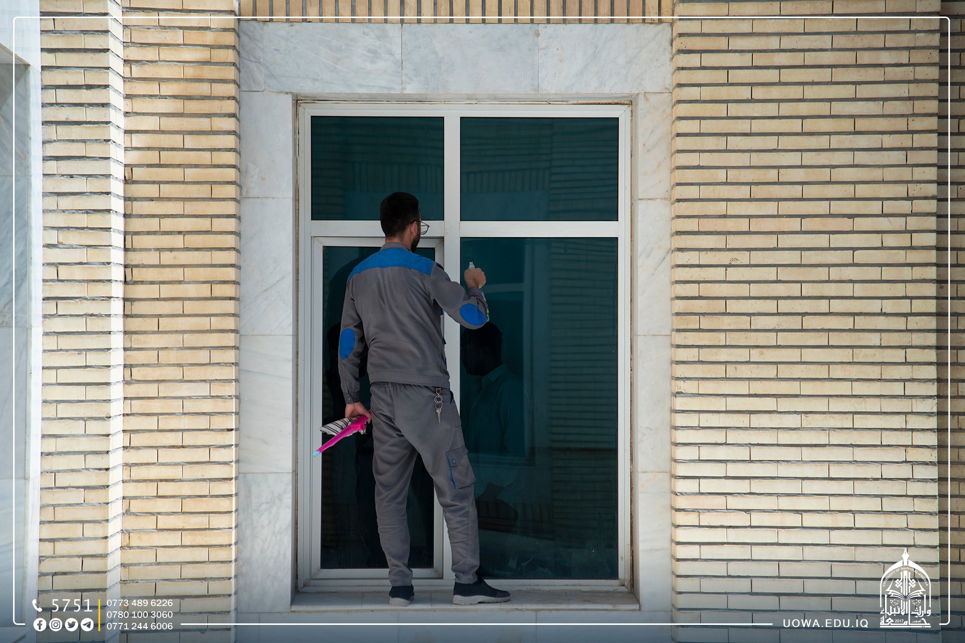 قسم رعاية الحرم في العتبة الحسينية المقدسة بكادره المتخصص يباشر بأعمال تهيئة مباني الجامعة وادامتها ضمن الاستعدادت للعام الدراسي الجديد.