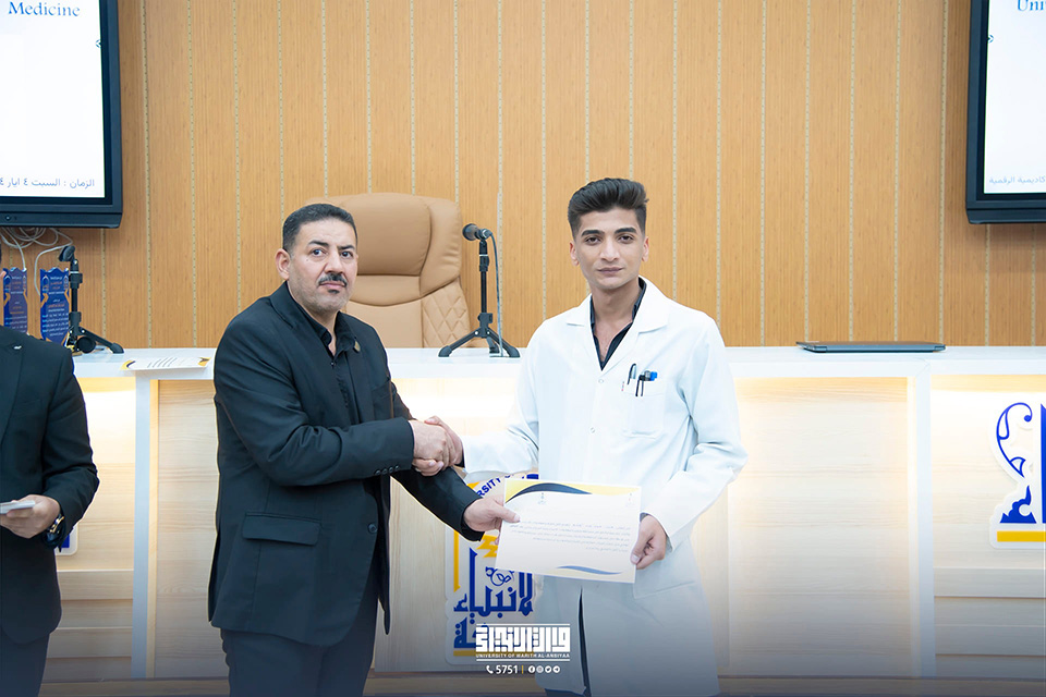 وخلال حفل التتويج، أكد الأستاذ الدكتور إبراهيم الحياوي على أهمية اهتمام الطلبة بتحصيل العلم باعتبارهم أطباء المستقبل الذين يتحملون مسؤولية كبيرة أمام المجتمع، إلى جانب أهمية الجوانب القيادية والمهنية للطبيب.
