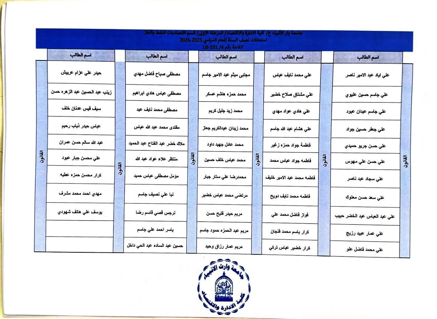 يرجى من الطلبة الاعزاء الحضور قبل وقت الامتحان بنصف ساعة