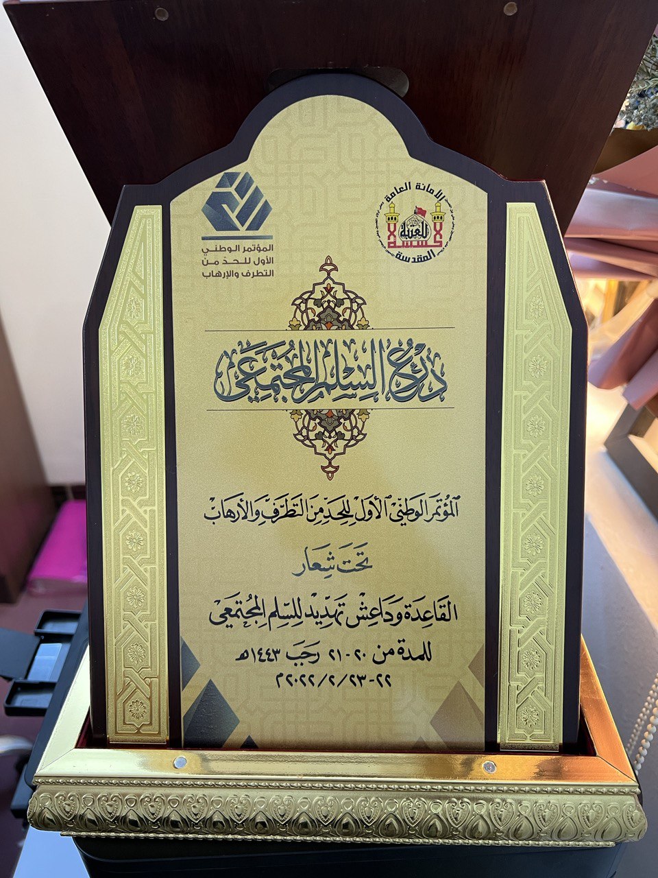 تقديرا للجهود المبذولة تم تكريم السيدة رئيس قسم المحاسبة (م.د هبة الله مصطفى السيد) بصفتها عضوا ومقررا في اللجنة العلمية بدرع السلم المجتمعي من قبل السيد رئيس اللجنة التحضيرية الشيخ؛ (علي القرعاوي) في المؤتمر الذي اقيم في العتبة الحسينية المقدسة الموسوم (المؤتمر الوطني الاول للحد من التطرف والارهاب).