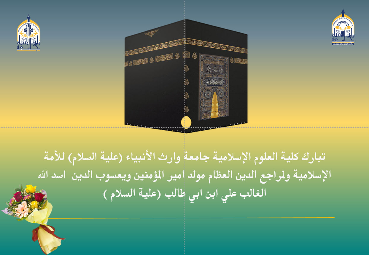 تبارك كلية العلوم الإسلامية جامعة وارث الأنبياء (عليه السلام) للأمة الإسلامية ولمراجع الدين العظام مولد امير المؤمنين ويعسوب الدين اسد الله الغالب علي ابن ابي طالب (علية السلام )