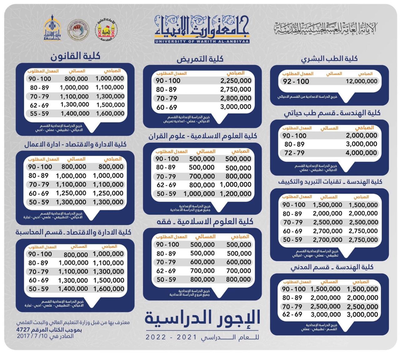 تعلن كلية العلوم الاسلامية في جامعة وارث الانبياء التابعة للعتبة الحسينية المقدسة عن قرب فتح التقديم الى اقسامها الثلاثة :