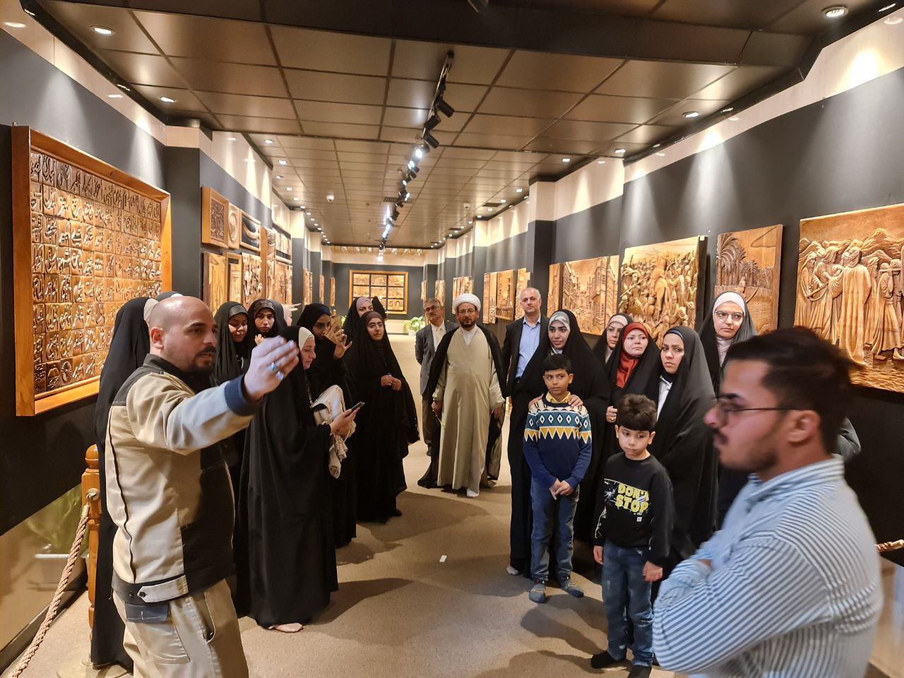 وقد شرح الفنان الأستاذ مرتضى النحات للطلبة كيفية القيام بنحت الأخشاب وما تحمل اللوحات من التاريخ والمعاني. إذ قام طلبة المرحلة الرابعة للكلية العلوم الاسلامية بجولة في أروقة المعرض ليطلعوا على المعروضات الفنية القيّمة والمنفردة التي صنعت وصاغت بأنامل الخَدَمَ العاملين في شعبة النقش والزخرفة، شاهدوا خلالها اللوحات الفنية الجميلة التي صورت معالم مدينة الكاظمية المقدسة، فضلاً عن اللوحات التي نقشت عليها الآيات القرآنية والحكم والأحاديث الشريفة للرسول الأكرم وآله الأطهارعليهم السلام، اذ تجسدت فيه جمال وروعة هذا الفن العريق.