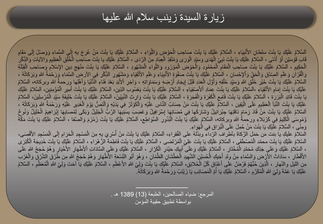 فسلامٌ عليك يا كعبة الأحزان يا أم المصائب والرزايا وعلى قلبكِ الصبور ولسانكِ الشكور ولا حرمنا الله زيارتكِ في الدنيا وشفاعتكِ في الآخرة آمين رب العالمين .
