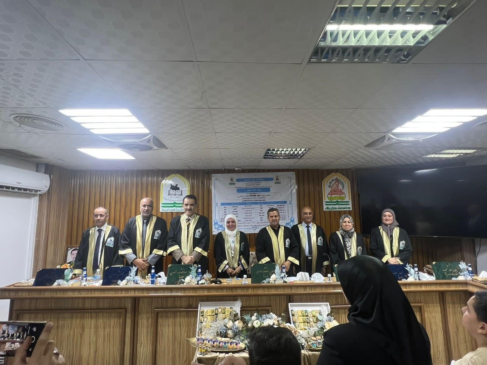 شارك الاستاذ الدكتور علي منصور جاسم معاون العميد للشؤون الادارية في كلية الطب جامعة وارث الانبياء عليه السلام في لجنة مناقشة الدكتوراه (رئيس اللجنة) في جامعة كربلاء كلية التربية للعلوم الصرفة للطالبة سهاد خالد صغير عن اطروحتها الموسومة تشخيص بعض انواع الخميرة Candida spp