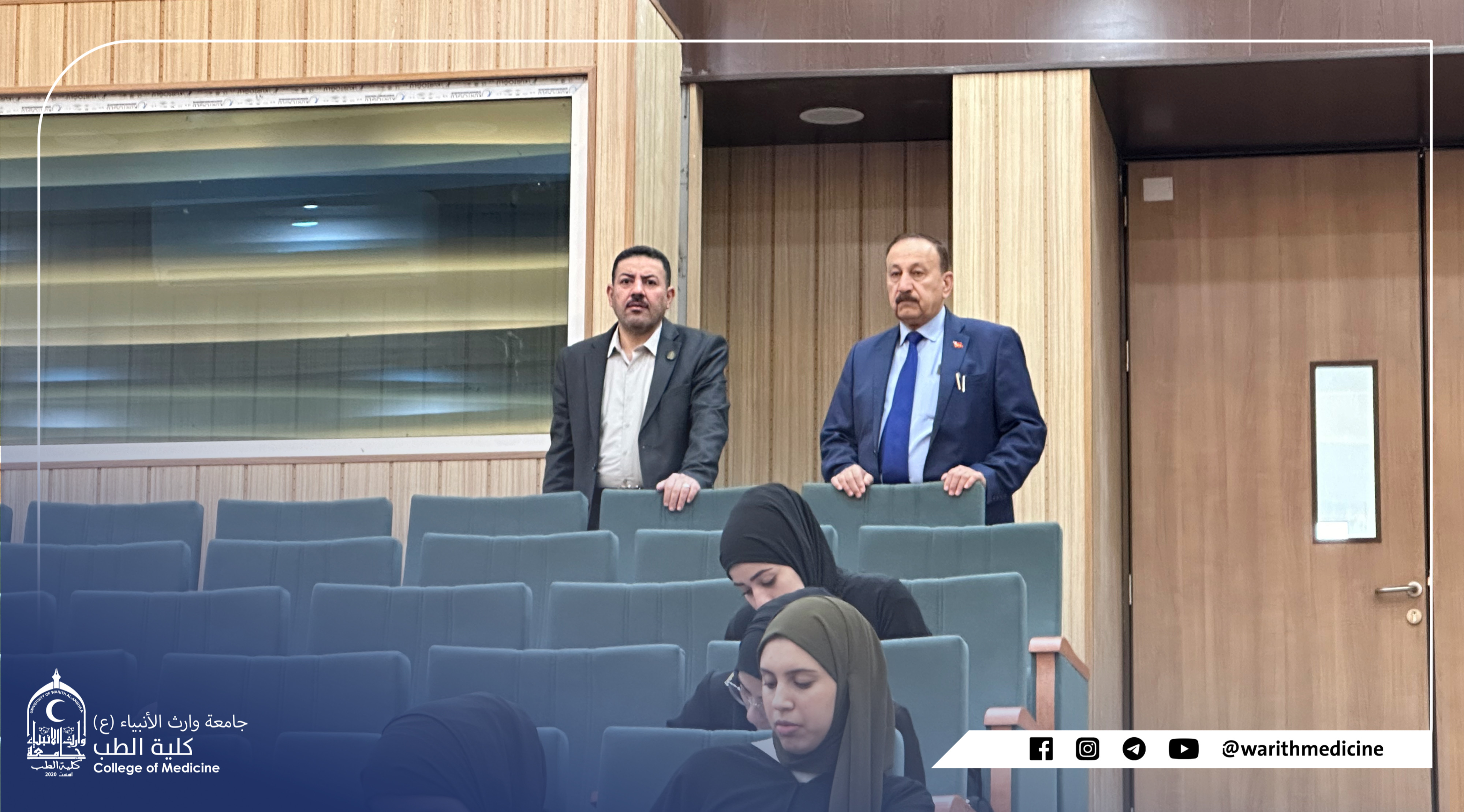 بأشراف ومتابعة السيد عميد كلية الطب الاستاذ الدكتور علي عبد سعدون الغزي المحترم والسيد معاون العميد للشؤون العلمية المدرس الدكتور رياض حنيوه المحترم والسيد معاون العميد للشؤون الادارية الاستاذ الدكتور علي منصور المحترم ادى طلبة كلية الطب الامتحانات العملية للفصل الاول.