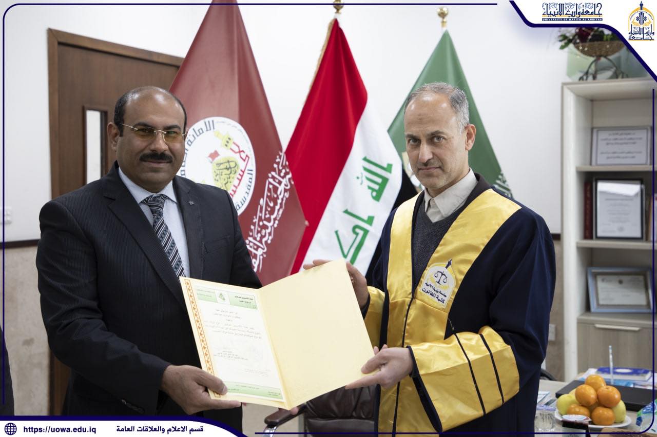 بعد حصوله على ترقية علمية رئاسة هيئة التعليم الجامعي و جامعة وارث الانبياء(عليه السلام) تكرم معاون عميد كلية الهندسة