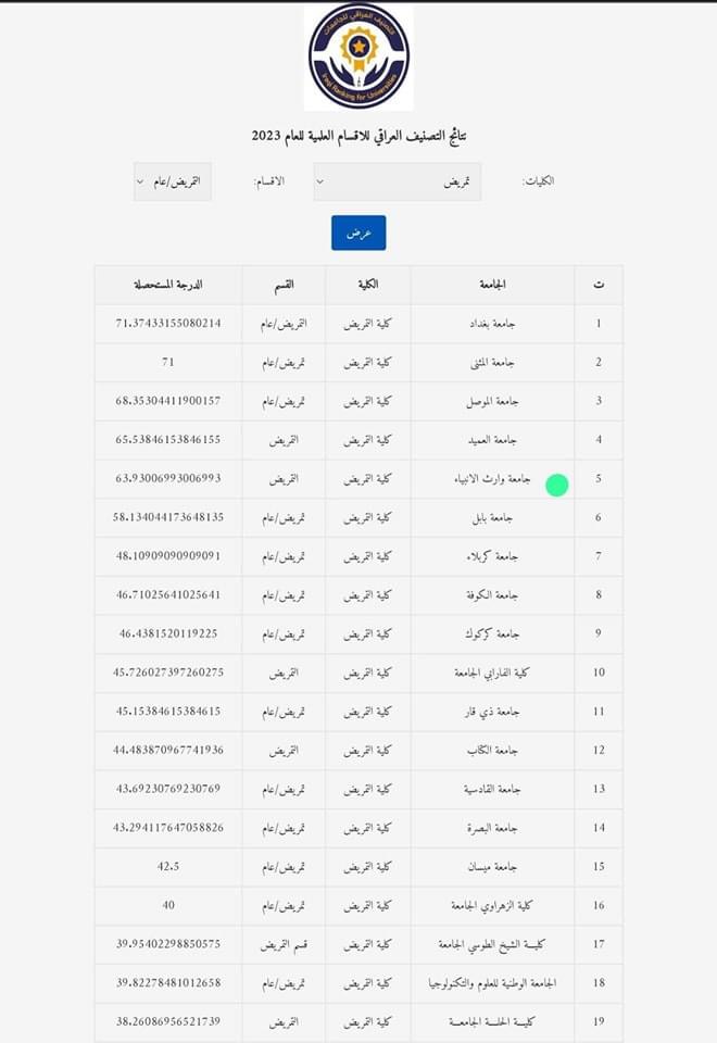 كلية التمريض بجامعة وارث الانبياء عليه السلام تحصد المركز الثاني على كليات التمريض العراقية الاهليه في نتائج التصنيف العراقي للكليات للعام 2023.حصدت كلية التمريض على المركز الخامس في التصنيف العراقي لكليات التمريض العراقية الحكومية والاهلية احرزت مراتب متقدمه متجاوز بذالك كليات حكومية عريقه في نتائج التصنيف العراقي لكليات التمريض العراقية الحكومية والأهلية للعام 2023.وحرصا على تطوير البيئة التعليمية وقياس مؤشرات الأداء المؤسسي والبرامجي ومسار البحث العلمي تعلن وزارة التعليم العالي والبحث العلمي نتائج التصنيف العراقي ويتم إنجاز هذا التصنيف من قبل جهاز الإشراف والتقويم العلمي في وزارة التعليم العالي والبحث العلمي بهدف الإرتقاء بالبيئة التعليمية ويعتمد التصنيف العراقي للكليات وفي الختام اثنى السيد العميد الاستاذ الدكتور مرتضى غانم عداي ال كتاب الجبوري ان رفع اسم كلية التمريض بين كليات التمريض العراقية وعلى الصعيد المحلي والاقليمي والعالمي يأتي ضمن جهود عمادة كلية التمريض وشعبة ضمان الجودة والاداء الجامعي وثمرة أساتذة الكلية وعملهم الدؤوب في انجاز المهام المكلفة اليهم والعمل بروح الفريق الواحد لانجاز المهام باكمل وجه وبالسرعة الممكنة.سائلين الله العلي العظيم المزيد من الإنجازات العلمية المتميزة لرفع اسم كليتنا في المحافل المحلية والدولية .