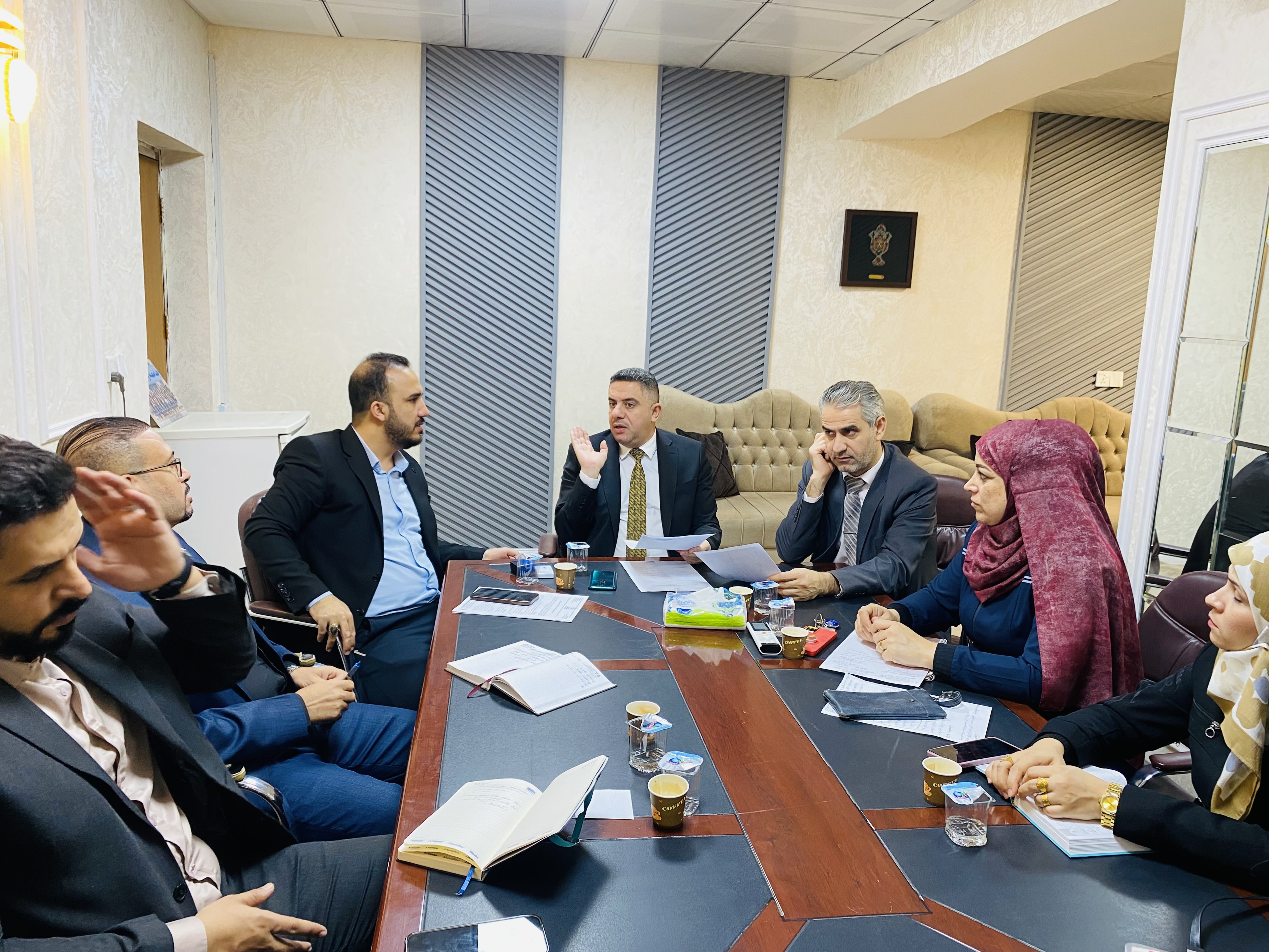 اجتماع لجنة الاعتماد البرامجي في كلية التمريض برئاسة الأستاذ الدكتور مرتضى الجبوري، ورئيس قسم ضمان  الجودة المدرس المساعد حسين الغانمي، يعد خطوة هامة نحو تعزيز جودة التعليم والبرامج الأكاديمية في الكلية.