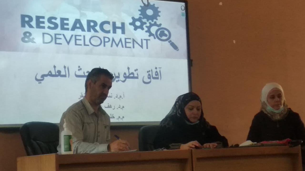 القى رئيس فرع اساسيات التمريض الاستاذ المساعد الدكتور نسيم صقر وبالمشاركة مع المدرس رهف عقل رجوب والمدرس المساعد خلود هاشم سلوم ندوة علمية حول افاق تطوير البحث العلمي وبحضور تدريسي كلية التمريض