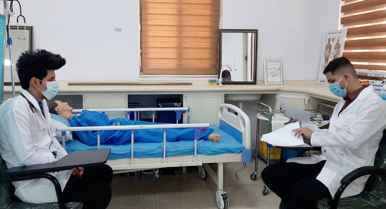 في سياق الانتهاء من الامتحانات العملية والتهيأ للامتحانات الحضورية النظرية... يؤدي طلبة كلية التمريض اخر الامتحانات العملية النهائية للفصل الاول.