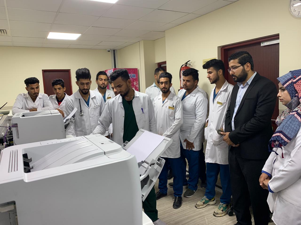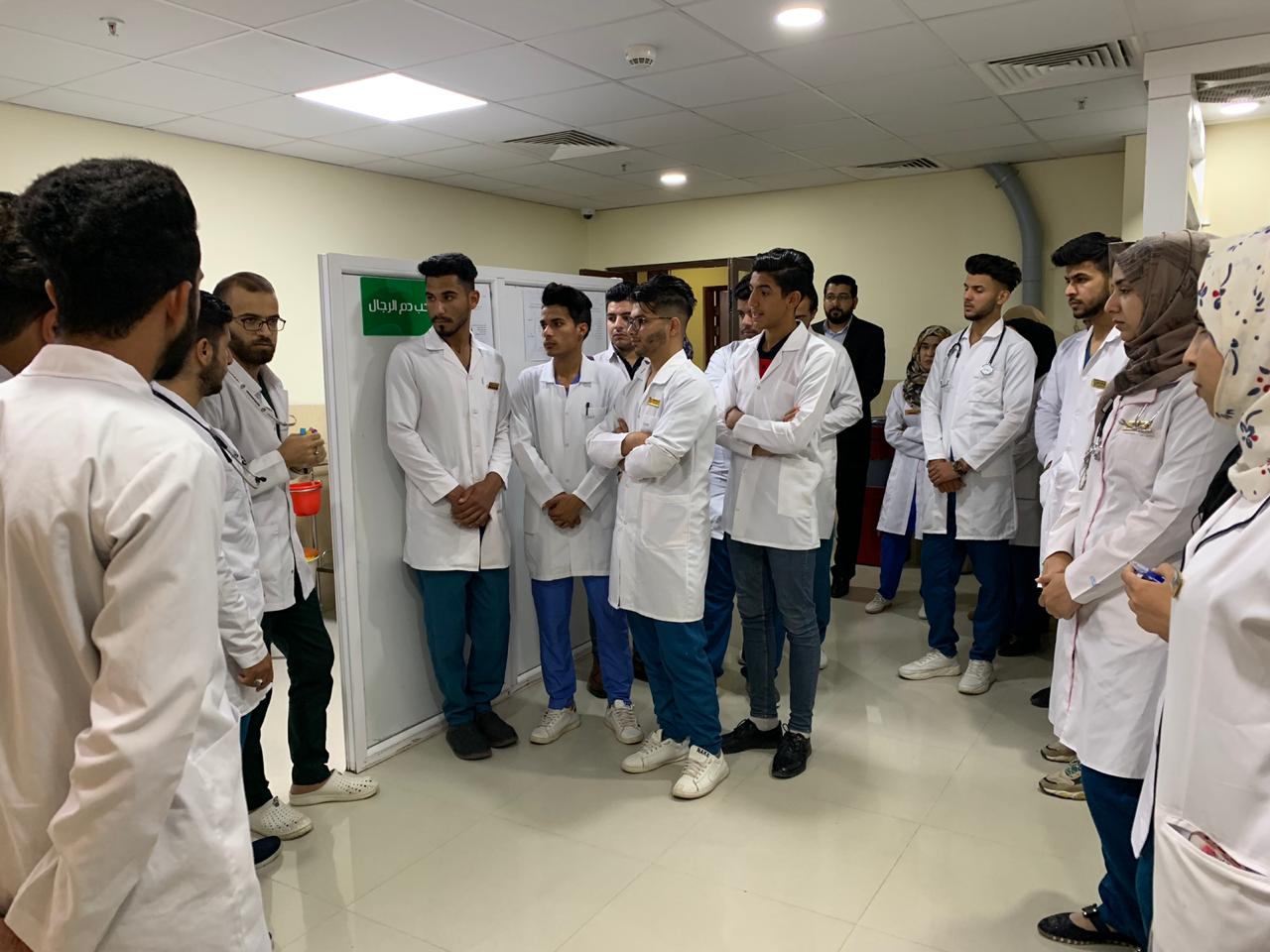 حيث كان باستقبالنا قسم العلاقات و الاعلام في المستشفى و مرافقة الوفد في جميع مرافق المستشفى حتى نهاية الزيارة و العودة الى الجامعة