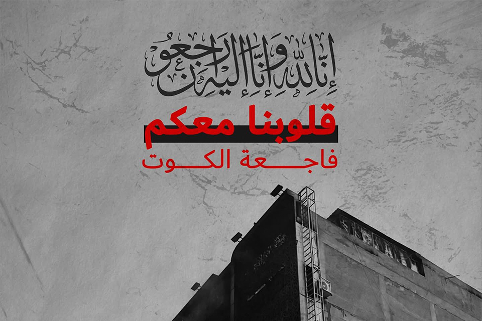 وبعد: فقد تلقينا بمزيد من الأسى والأسف نبأ حادث الحريق المفجع في أحد مراكز التسوق بمدينتكم العزيزة، الذي أودى بحياة العشرات من روّاده وتسبب في إصابة أعداد كبيرة أخرى، وإذ نتقدم اليكم ولا سيما الى المفجوعين بفقد أعزتهم بأحرّ التعازي وخالص المواساة في هذا المصاب الجلل نسأل الله العلي القدير أن يتغمد الشهداء الكرام بواسع رحمته ويمنّ على ذويهم بالصبر والسلوان وعلى المصابين بالشفاء العاجل. ولا حول ولا قوة الا بالله العلي العظيم.