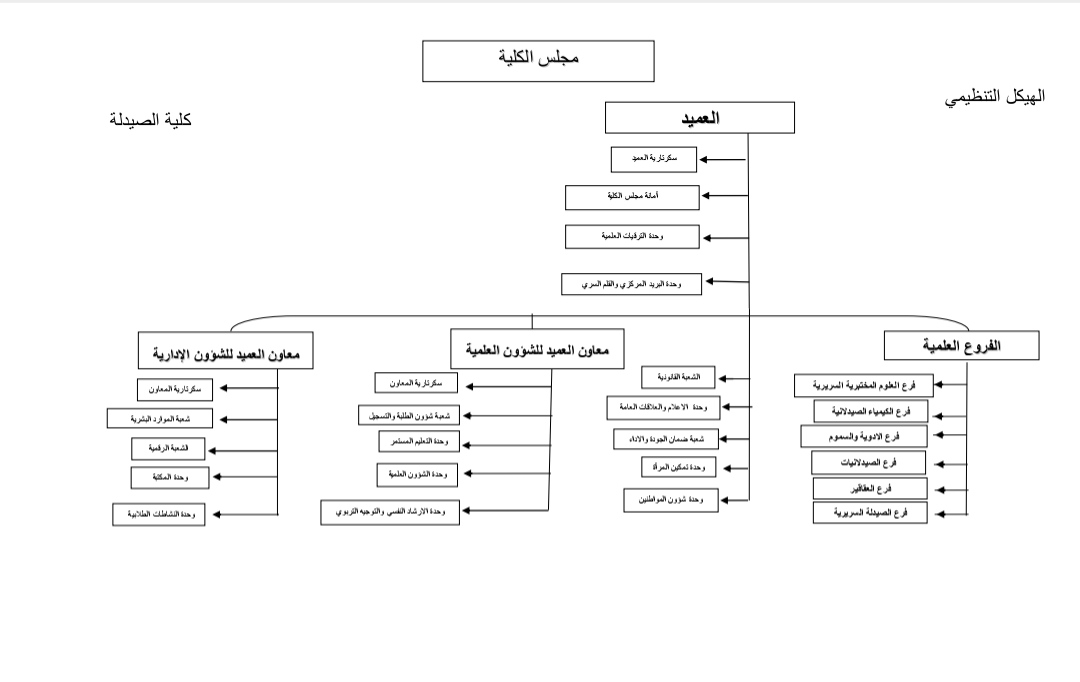 في خطوة تهدف إلى تعزيز العمل المؤسسي أقر مجلس كلية الصيدلة خلال اجتماعه الافتتاحي الهيكل التنظيمي للكلية، بما يضمن توزيع المهام والمسؤوليات بكفاءة وفاعلية علما ان الكلية حصلت علئ مصادقة السيد رئيس الجامعة.