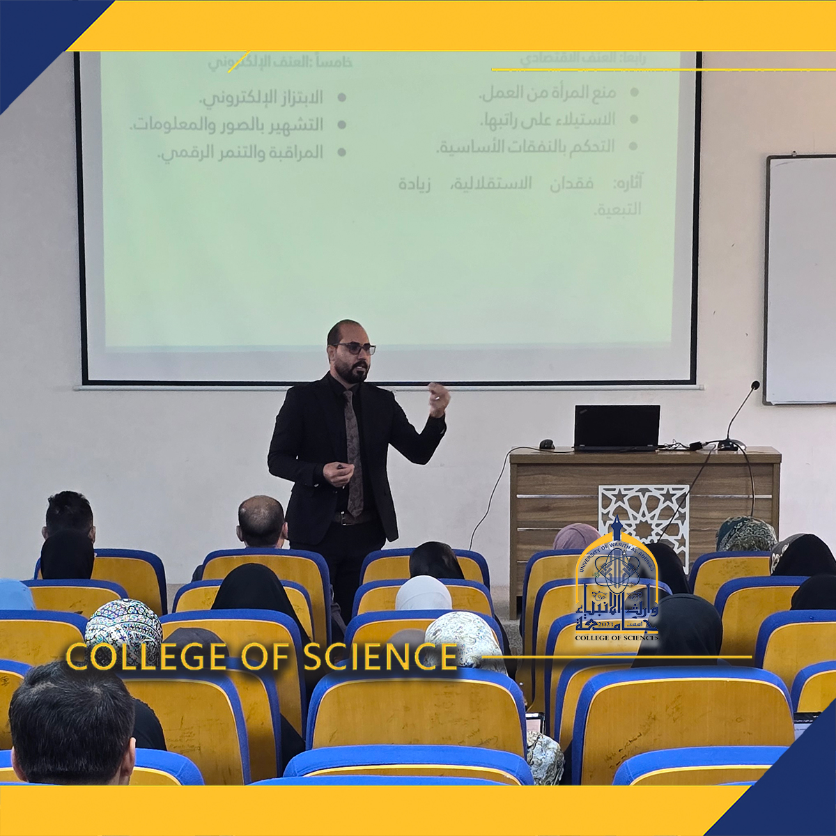 كلية العلوم في جامعة وارث الأنبياء عليه السلام تنظم ورشة توعوية بعنوان (العنف ضد المرأة: وعي ومناهضة)