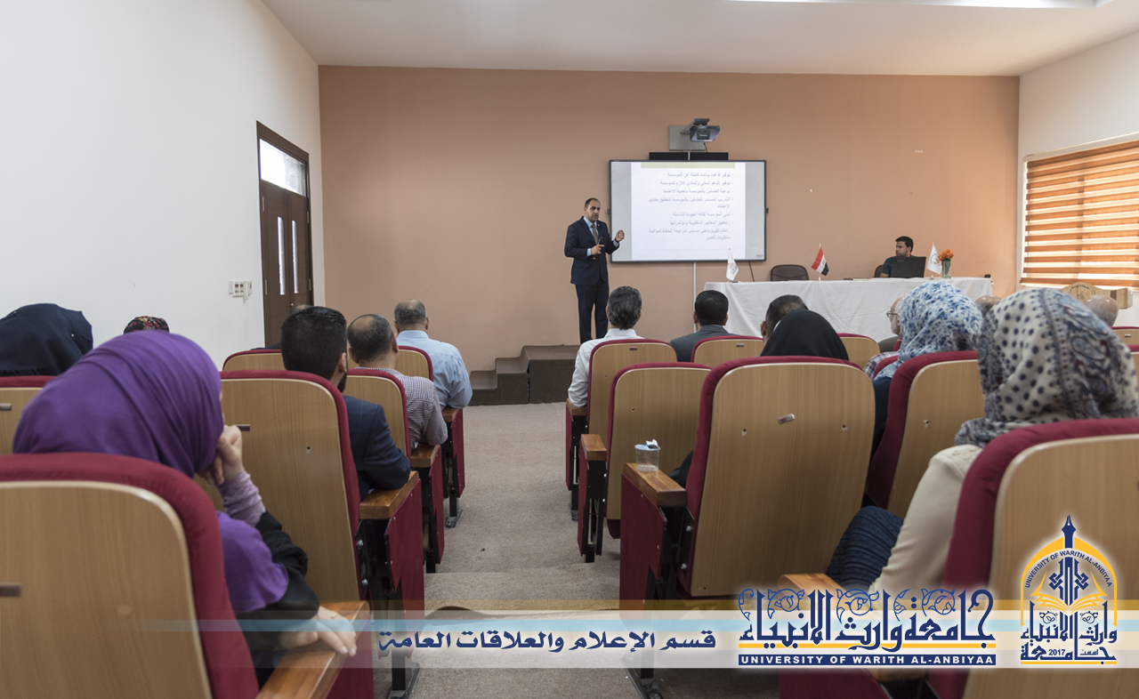 اقام قسم التعليم المستمر في جامعة وارث الانبياء ضمن فعاليات اسبوع الجودة محاضرة بعنوان اخلاقيات العمل الجامعي ودورها في ضمان جودة التعليم وذكر التدريسي في كلية القانون الدكتور عقيل كريم أن الهدف من المحاضرة هو التأكيد على الالتزام بالأخلاقيات والسلوكيات الجامعية لضمان المخرجات السليمة، مضيفا: أصبح “التميز“ هو حجر الزاوية في كل الجامعات، و السعي نحو الحصول على الجودة اكتسب طابعاً ملحاً في الآونة الأخيرة فلابد من زيادة قدرات ومهارات  الكوادر التدريسية وغرس قيم ومبادئ الاداء الجامعي الرصين الأمر الذي يسهم حقا في إثراء العملية التعليمية .