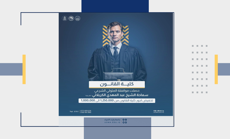 الرسوم: 100,000 دينار عراقي، تدفع في قسم الشؤون المالية بجامعة وارث الأنبياء.