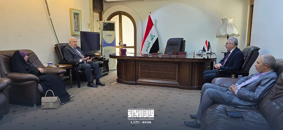 استقبل رئيس الجامعة، الأستاذ الدكتور إبراهيم الحياوي، والسيد المساعد الإداري، الأستاذ الدكتور نوفل الأعرجي، والسيد المساعد العلمي، الأستاذ الدكتور واقد الموسوي، عمداء الكليات ورؤساء الأقسام وأعضاء هيئة التدريس، الذين قدموا للتهنئة بمناسبة عيد الأضحى المبارك. وبدوره، قدم رئيس الجامعة أسمى التهاني والتبريكات للحضور، سائلاً الله أن يعيد هذه المناسبة على الشعب العراقي والعالم الإسلامي بالخير واليمن والبركات.