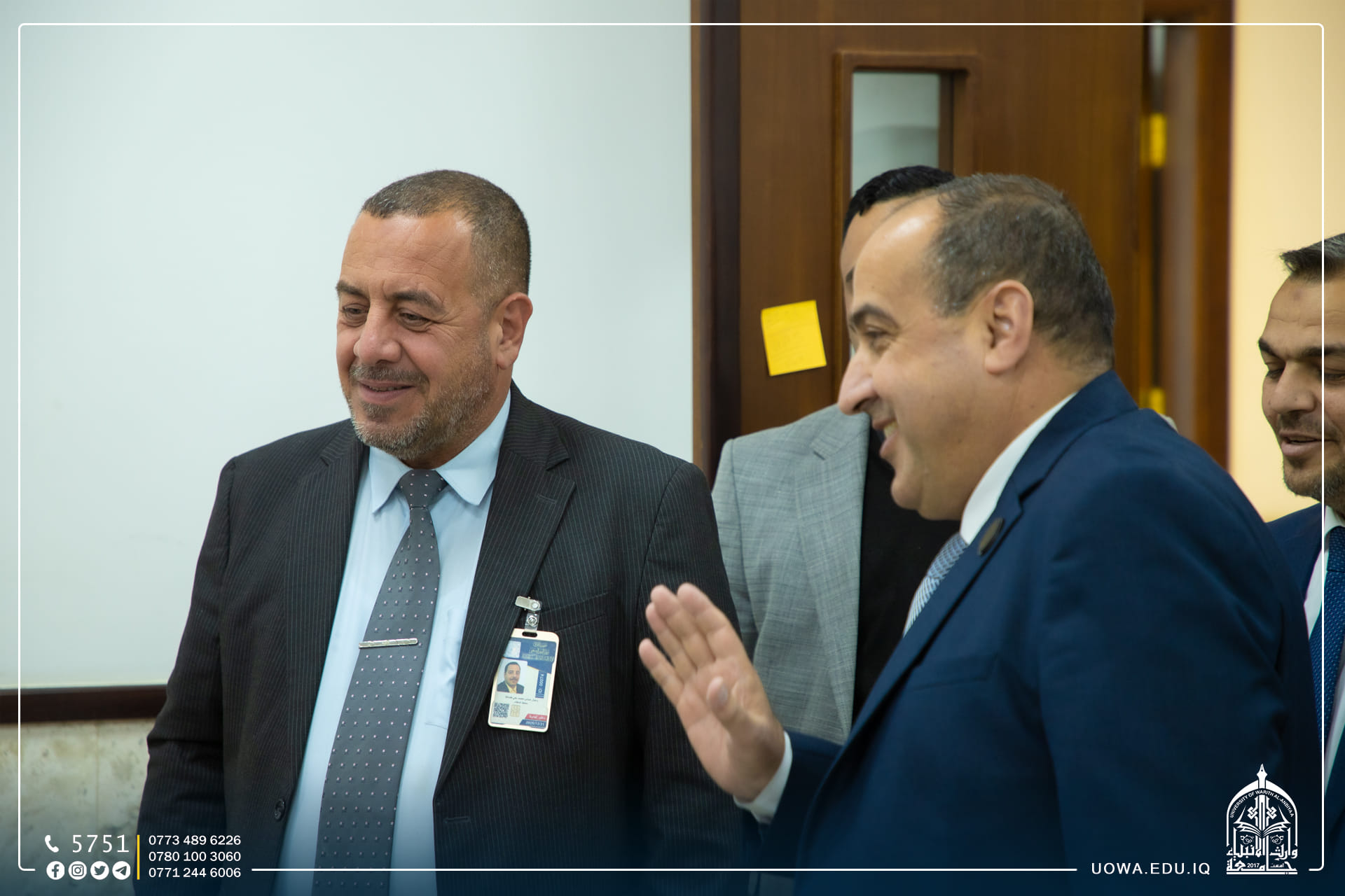 حرصا على تعزيز الاواصر العلمية والاكاديمية مع المؤسسات التعليمة ، زار رئيس الجامعة الاستاذ الدكتور ابراهيم الحياوي، والمساعد العلمي الاستاذ الدكتور واقد الموسوي،والوفد المرافق لهما ، رئاسة جامعة كربلاء لتقديم التهاني والتبريكات لتجديد الثقة لمساعدي رئيس جامعة كربلاء الإداري والعلمي، الاستاذ الدكتور اكرم الياسري، والاستاذ الدكتور نجم عبدالحسين، بالإضافة الى تهنئة عمداء الكليات الذين تسنموا مناصبهم حديثاً.