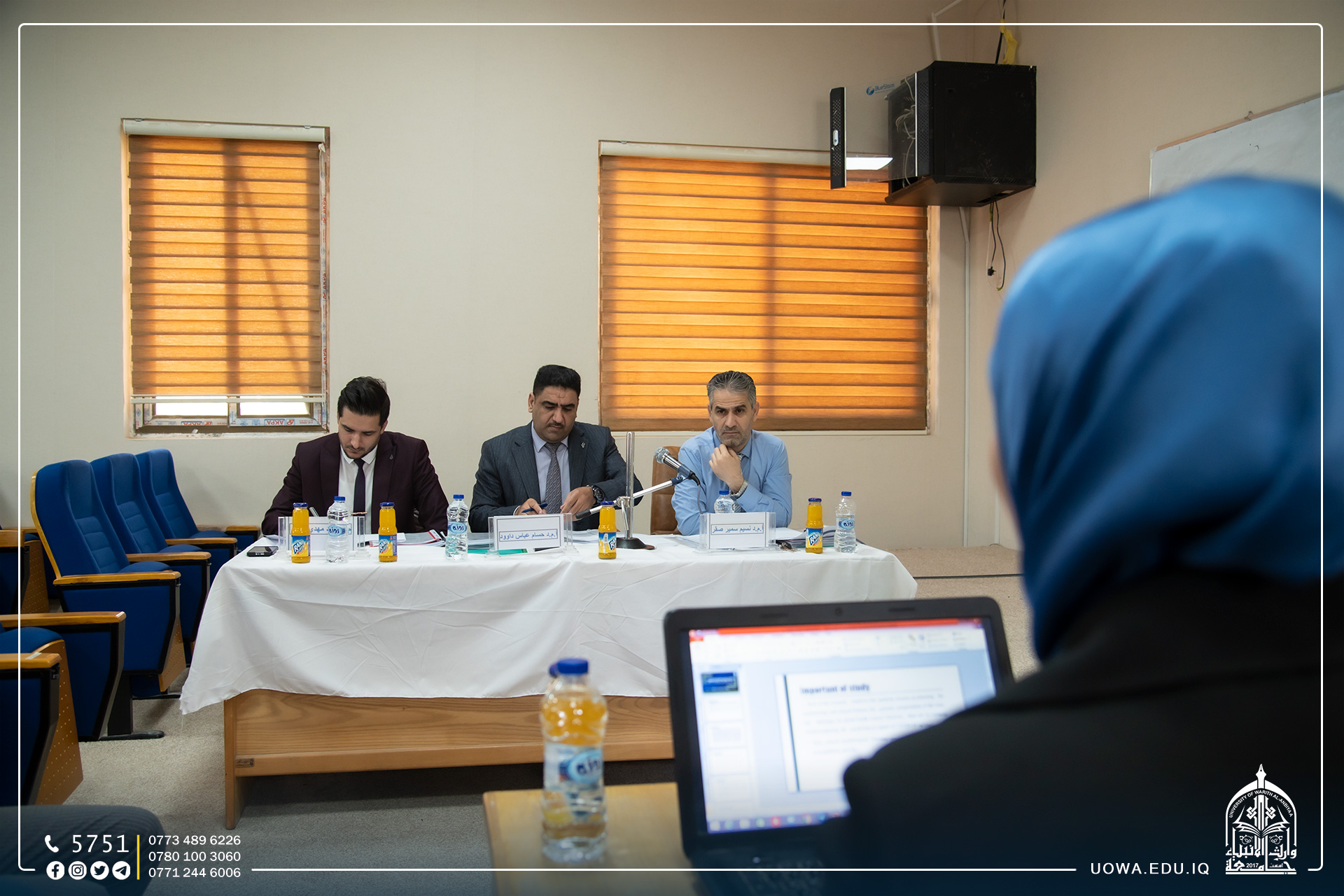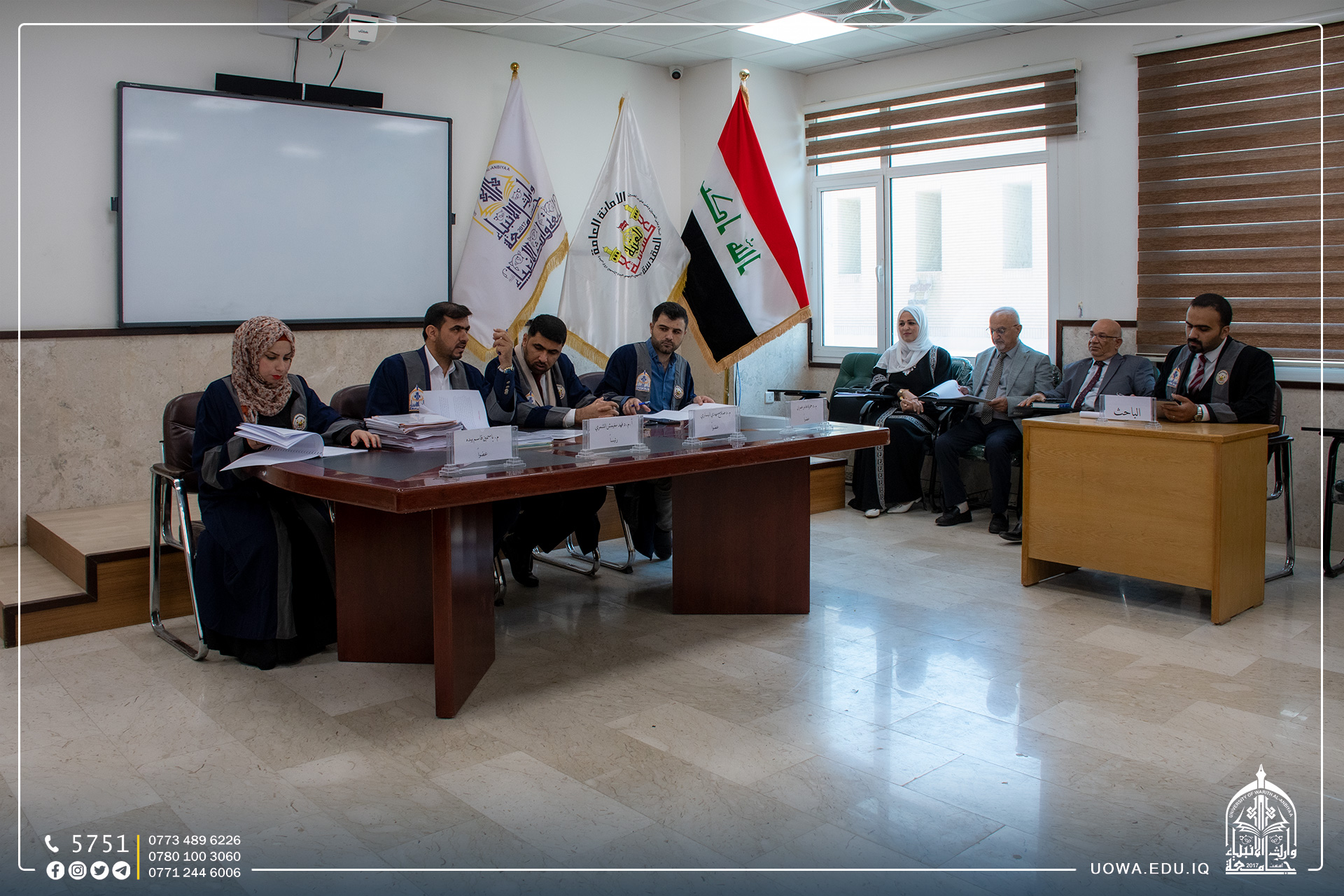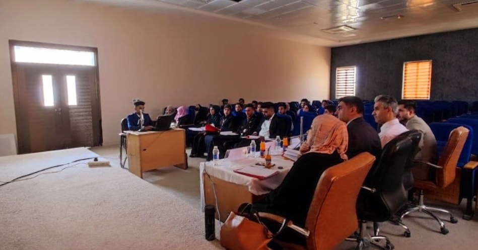 جانب من مناقشة بحوث التخرج لطلبة المرحلة الرابعة في كلية التمريض بجامعة وارث الانبياء (عليه السلام ) وبالتعاون مع كلية التمريض جامعة كربلاء