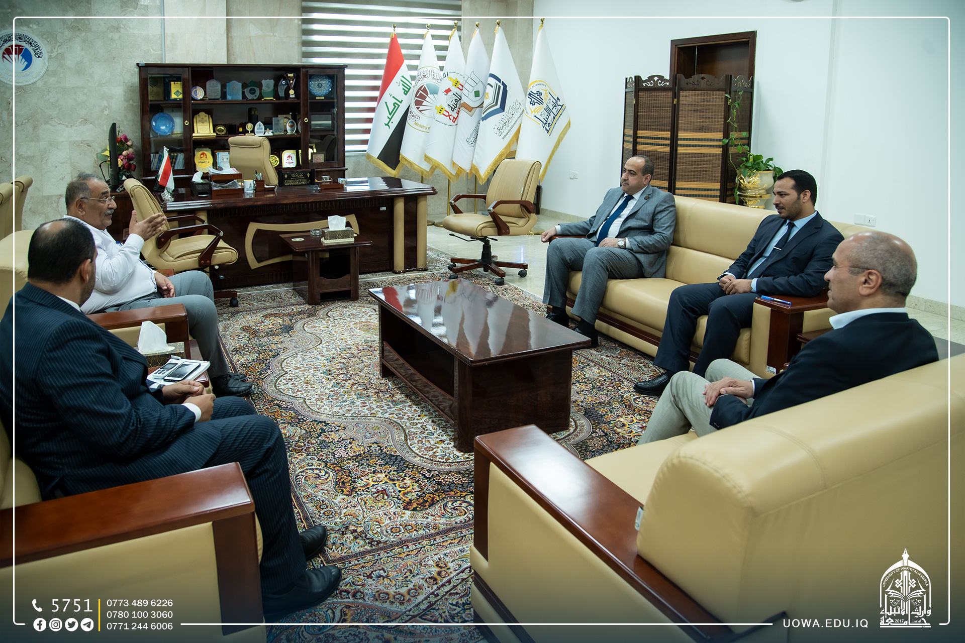 تعزيزاً للتعاون العلمي والاكاديمي مع الجامعات العراقية، استقبل السيد رئيس جامعة وارث الأنبياء (عليه السلام) الاستاذ الدكتور ابراهيم الحياوي، الاستاذ الدكتور باسم شهاب احمد رئيس جامعة ابن سينا للعلوم الطبية والصيدلانية بالعاصمة بغداد، للتباحث حول امكانية التعاون العلمي والاكاديمي ضمن اطار العمل المشترك لمؤسسات وزارة التعليم والبحث العلمي.