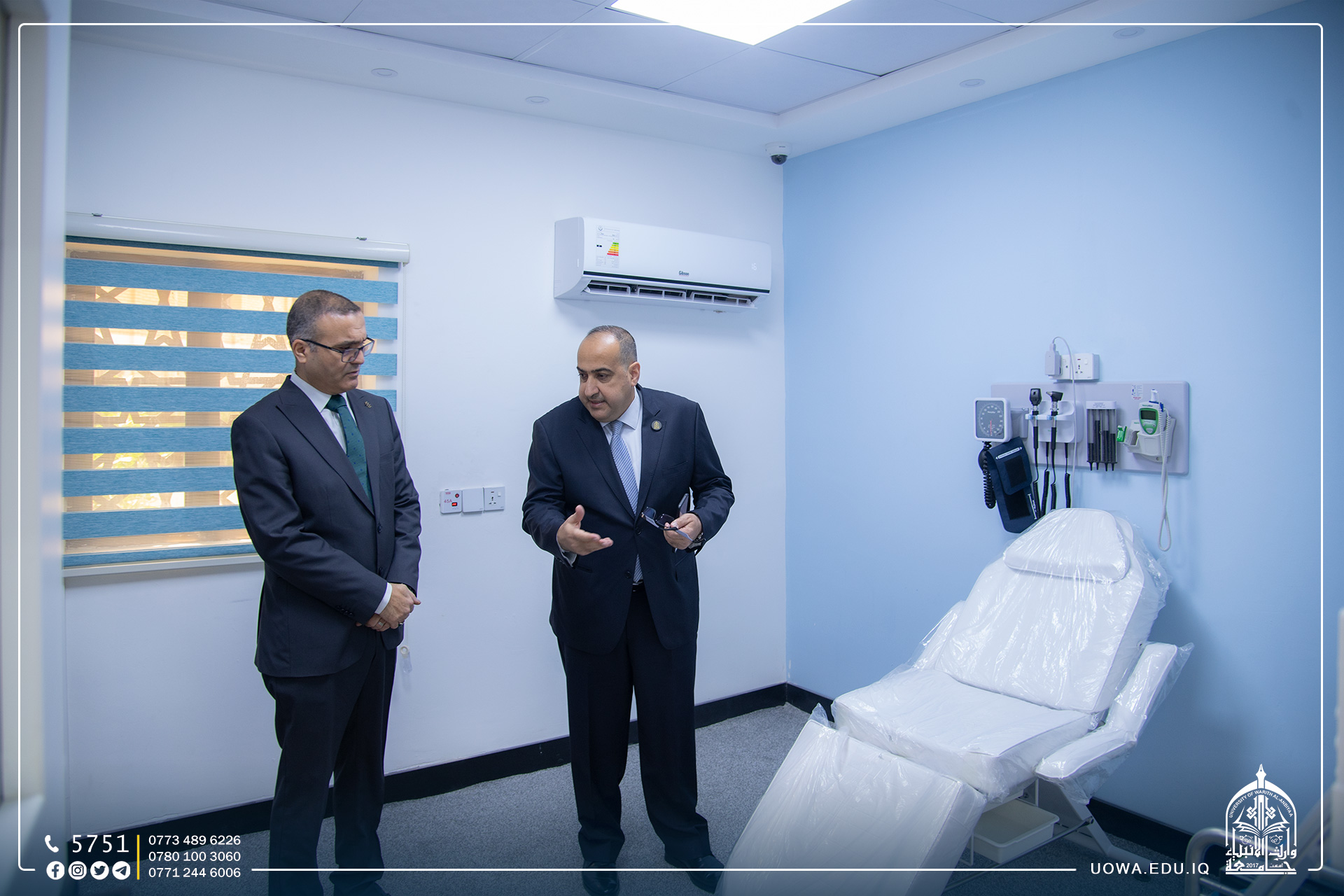 والتقى الوفد بعميد كلية الطب في جامعة وارث الانبياء(عليه السلام) الاستاذ الدكتور احمد العزاوي، واطلع على الواقع العلمي للكلية.