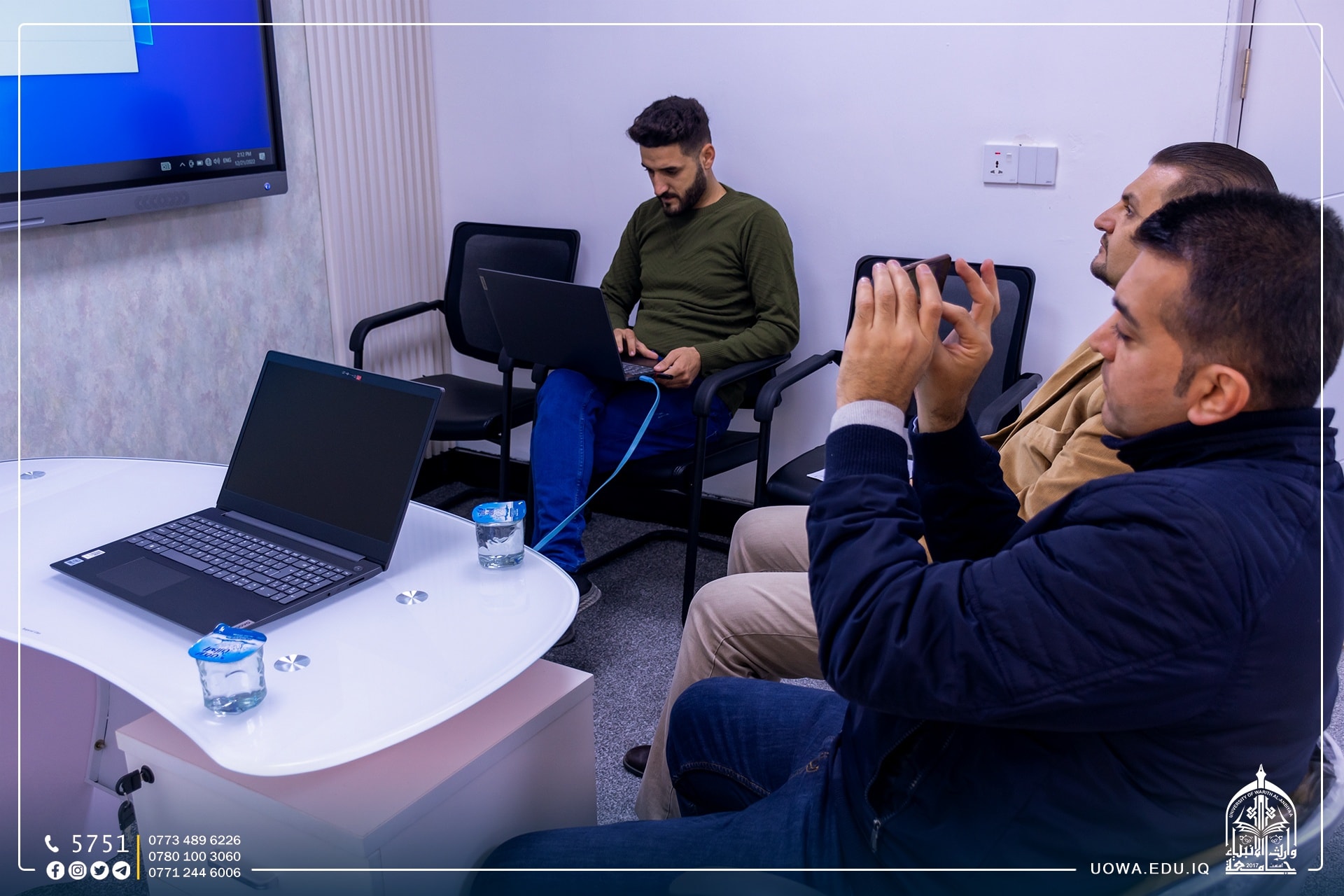 جانب مصور من مناقشة سجلات التدريب الصيفي لطلبة المرحلة الرابعة، ضمن متطلبات التخرج لطلبة كلية القانون في جامعة وارث الانبياء (عليه السلام).