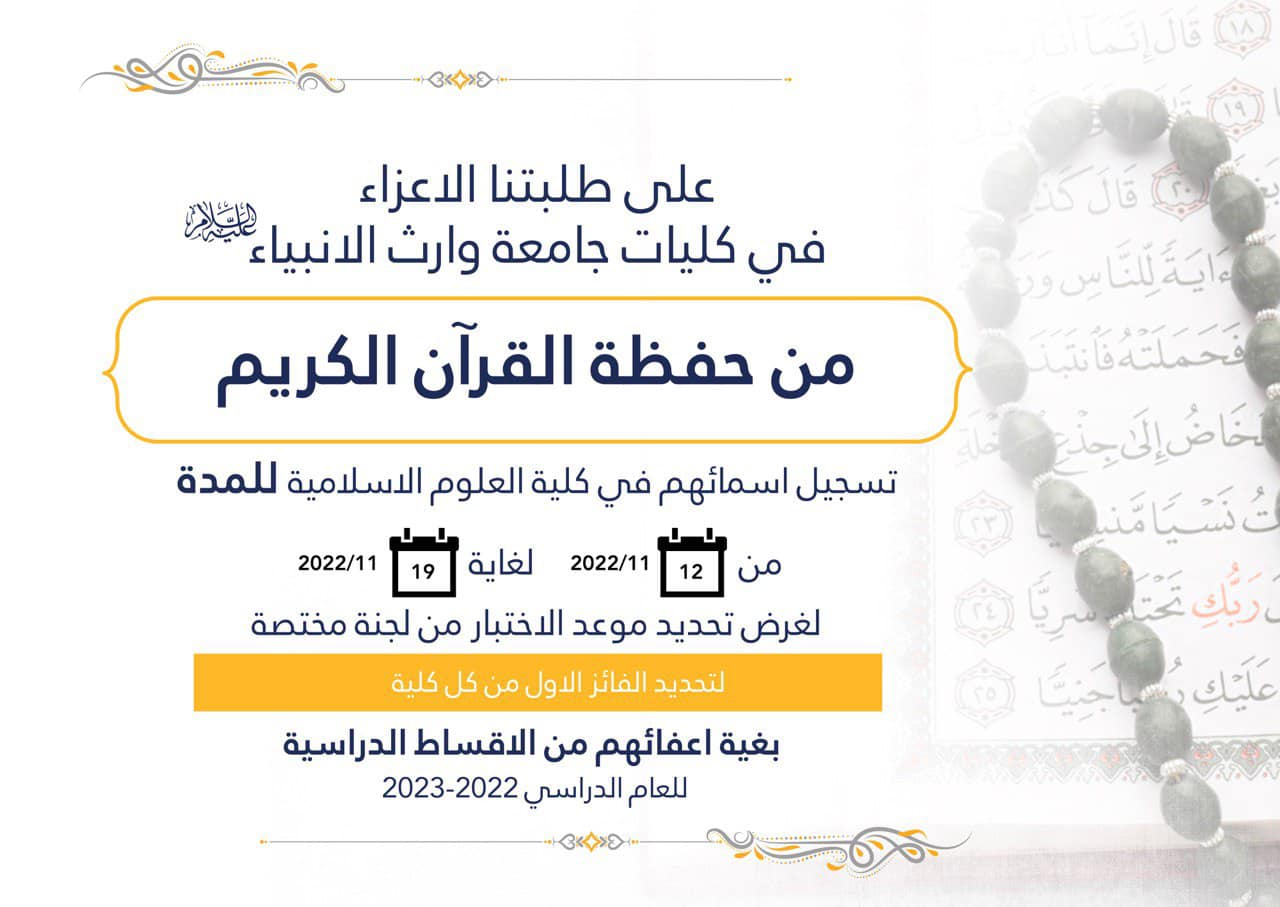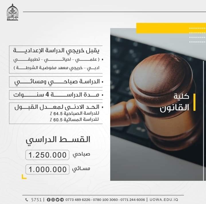 الى طلبتنا الاعزاء الراغبين بالتقديم على كلية القانون في جامعة وارث الانبياء(عليه السلام)