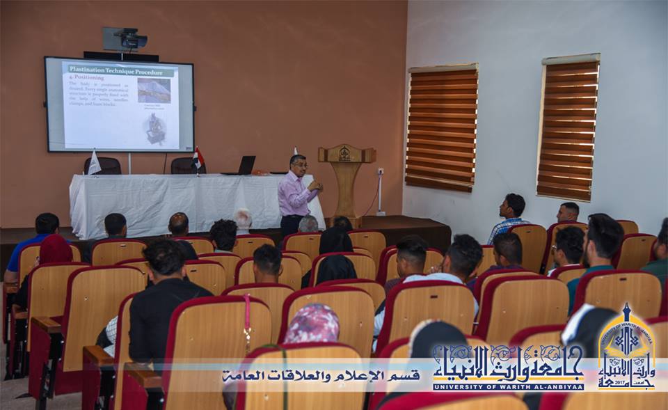 نظم مركز التعليم المستمر في جامعة وارث الانبياء ندوة علمية عن تقنية البلستكه في التحنيط حيث بين مقرر فرع جراحة الوجه والكفين في كلية طب الاسنان جامعة كربلاء الاستاذ الدكتور رائد حمزة محمد أن الغرض من اقامة الندوة هو التوعية لمعرفة طريقة التحنيط الحديثة وماهي سلبياتها وايجابياتها حيث ان تقنية البلستكة تستخدم في تحنيط النماذج البايولوجية البشرية المستخدمة في دراسة علم التشريح أو علم الاشعة أوعلم الامراض وأضاف بأهمية تعريف العاملين بهذا المجال عن ملخص التقنية وهو استبدال الماء والدهون في الانسجه البيولوجيه بالبوليمرات مما يؤدي الى عينات جافة وعديمة الرائحة يتم توفيرها لطلاب كليات الطب وطب الاسنان لانها تعتبر أساس دراستهم، وأعرب عن شكره لجامعة الوارث بأتاحتها الفرصة لأقامة هكذا ندوات فهي تعزز مكانتها عربيا وعالميا بأعتبارها جامعة مرموقة تحث على الرصانة العلمية.