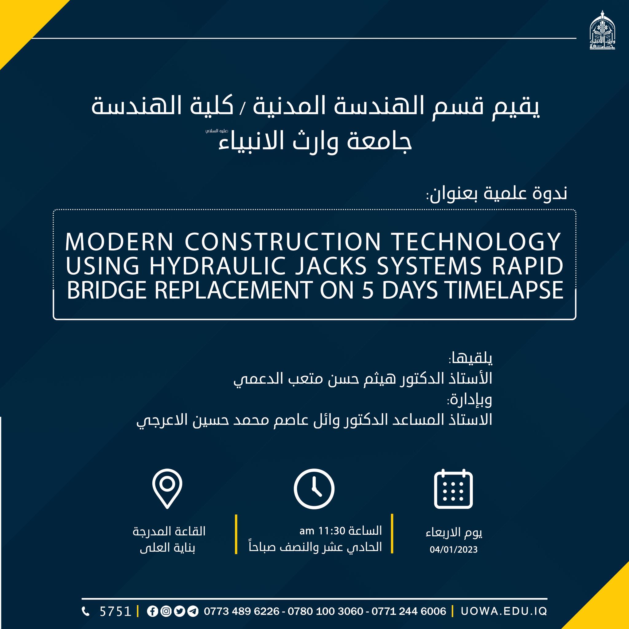 العراق – كربلاء المقدسة على قاعات جامعة وارث الانبياء ع.الوقت