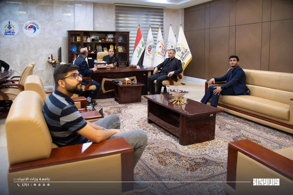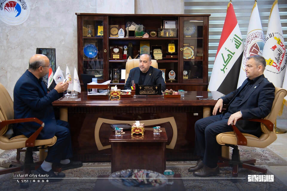 In its ongoing efforts to enhance digital infrastructure and improve safety and emergency response systems, the University of Warith Al-Anbiyaa (PBUH) has launched the first phase of its Civil Defense Early Warning Program. The launch took place during a meeting between the President of the University, Prof. Dr. Ibrahim Saeed Al-Hayawi, the Vice President of Academic Affairs, Prof. Dr. Waqed Al-Moussawi, and a delegation from the Media Department of the Holy Shrine of Imam Hussein (PBUH).