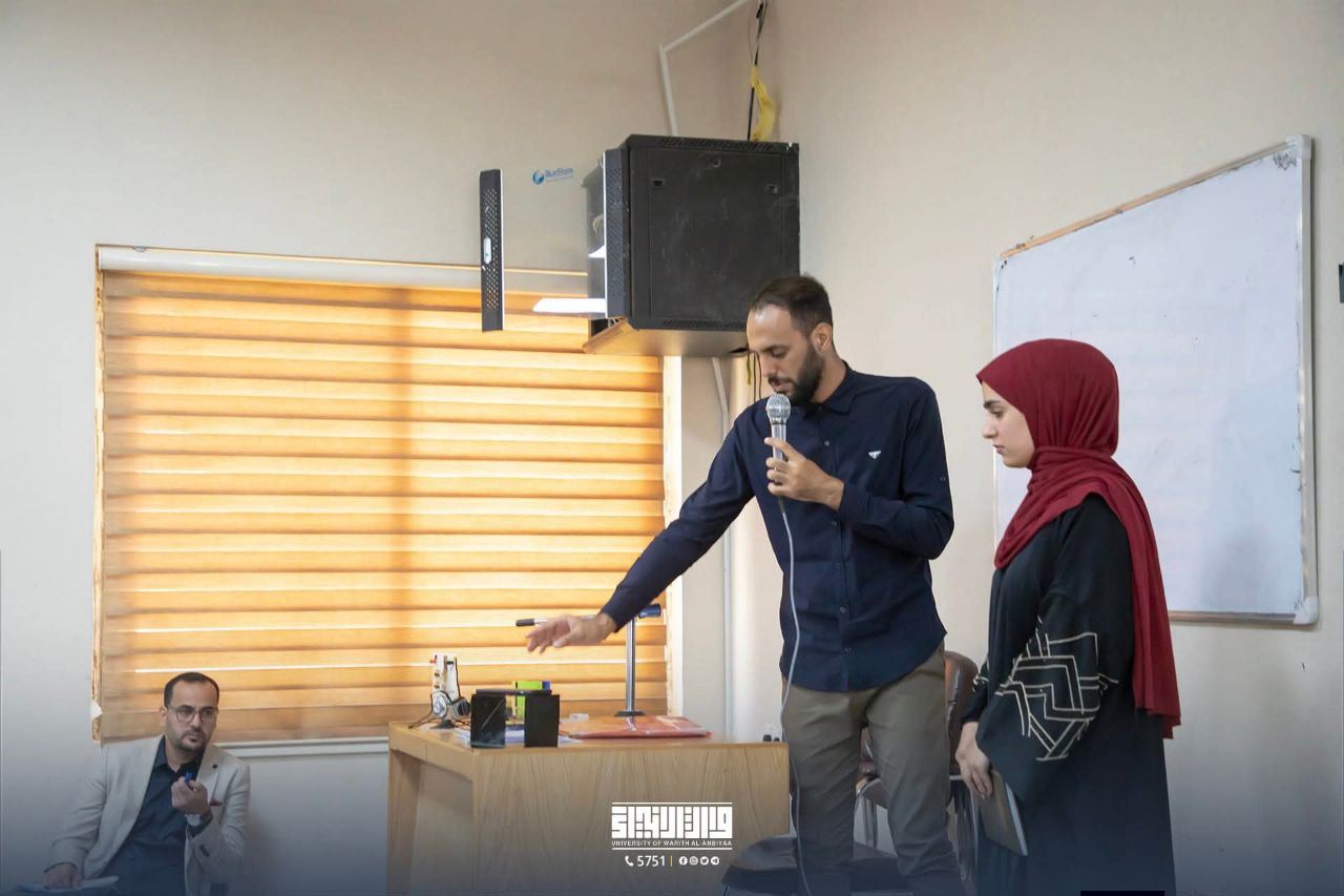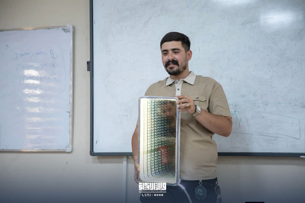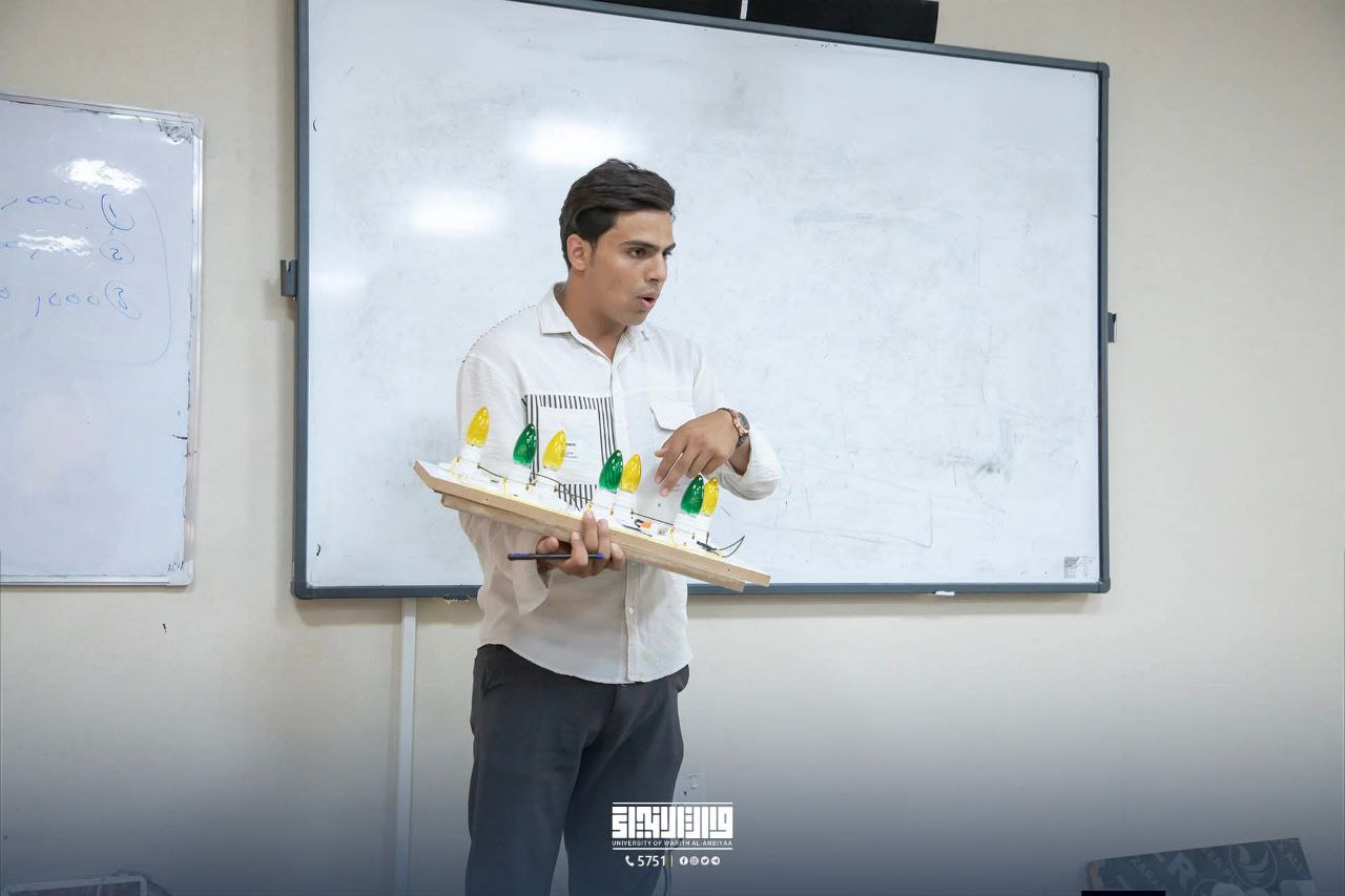 In the presence of the University President, Prof. Dr. Ibrahim Al-Hayawi, the Scientific Assistant, Prof. Dr. Waqid Al-Mousawi, and the Dean of the Faculty of Science, Dr. Shaimaa Hussein Nawfal, first-year students of the Department of Medical Physics organized a series of seminars and practical experiments in groups. These activities aimed to foster the development of their scientific ideas and enhance their knowledge, reflecting the Faculty’s vision of enabling students to effectively link theoretical knowledge with practical application.