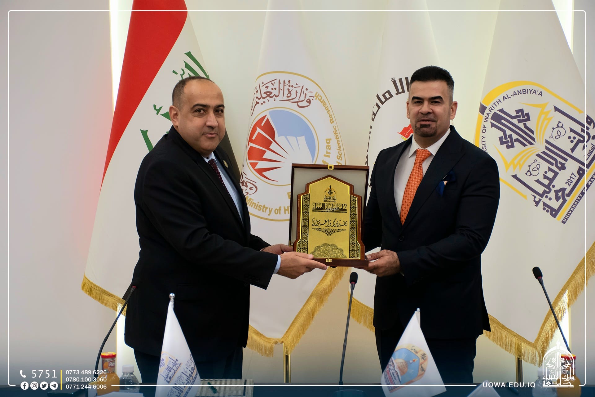 As part of its ongoing efforts to elevate the state of education in our beloved country and to serve our dear students, the University of Warith Al-Anbiyaa Inheritance has signed a scientific agreement with the University of Kirkuk. Representing the University, Professor Dr. Ibrahim Al-Hayawi, the President of the University, signed the agreement, while Dr. Imran Jamal, the President of the University of Kirkuk, represented their institution.