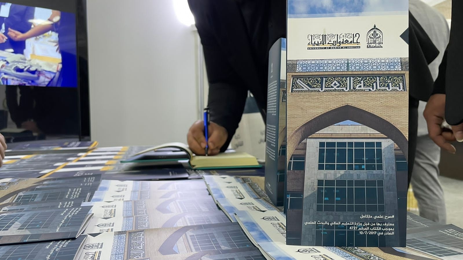 In the presence of the religious custodian of the Abbasid Holy Shrine, His Eminence Sayed Ahmed Al-Safi, and the Deputy Secretary-General of the Holy Hussein Shrine, Dr. Alaa Diaa Al-Din, the University of Warith Al-Anbiyaa participated, represented by the Media and Public Relations Department, in the (Ain Al-Hayat) festival organized by the "Al-Qabas Foundation for Culture and Development." The festival included the participation of the holy shrines in Iraq and various religious institutions, aiming to clarify the correct ideology and upright behavior to confront intellectual deviations and attacks faced by society, especially in religious aspects, including Mahdavi thought issues.