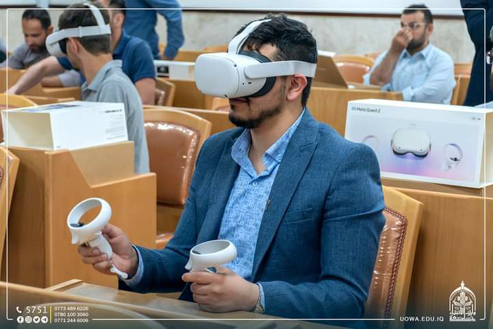 A training course for university students and College of Engineering staff entitled (Virtual Reality Device_VIRTUAL REALITY) held by the Continuing Education Center in cooperation with the College of Engineering/Department of Air Conditioning and Refrigeration Technologies, presented by Eng. Ammar Muhammad Ali and Engineer Mustafa Jaafar Abdel Amir.