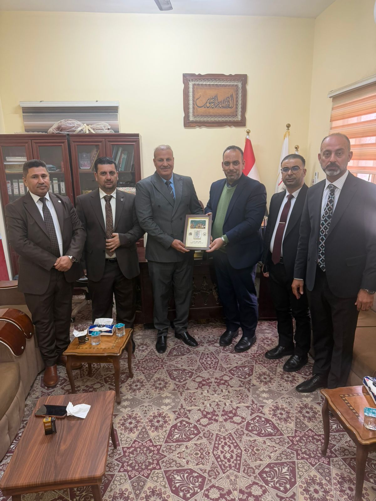 A delegation from the Faculty of Media at Al-Waritheen University, affiliated with the Holy Hussein Shrine, discussed with the deanship of the Faculty of Media at Thi Qar University the latest developments in the field of media, artificial intelligence, and joint evaluation exams