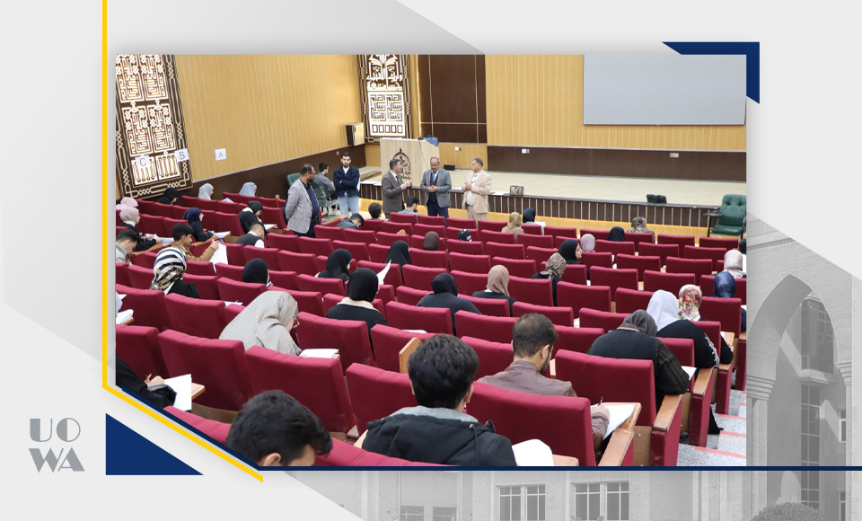 The College of Medicine at Warith Al-Anbia University conducted the internal medicine exam for third-year students, under the direct supervision of Professor Dr. Ali Abdul Saadoun, Dean of the College, and Assistant Professor Dr. Laith Al-Hussaini, Assistant Dean for Academic Affairs.