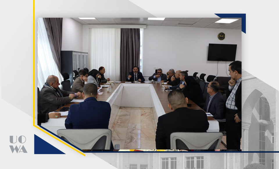 The College of Medicine Council at Warith Al-Anbia University (peace be upon him) held its regular session, headed by Professor Dr. Ali Abdul Saadoun, the respected Dean of the College, and attended by Assistant Professor Dr. Laith Muhammad, the Scientific Assistant, and Lecturer Dr. Anwar Sadiq, the Administrative Assistant, in addition to the respected heads of the branches.
